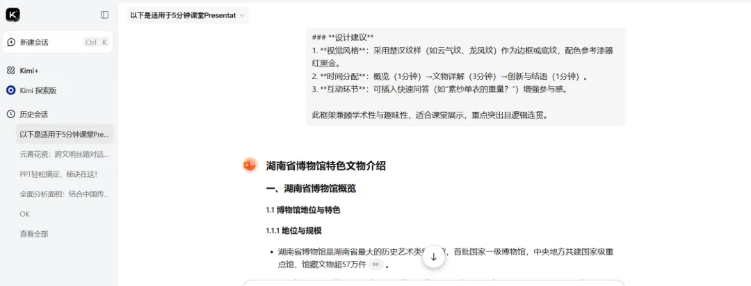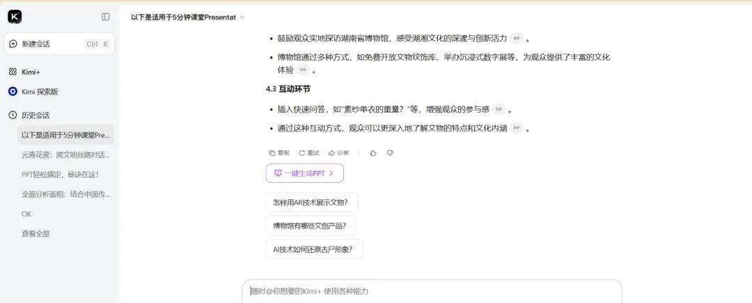 第二步:把生成的文稿资料发给Kimi,勾选上“PPT制作”功能