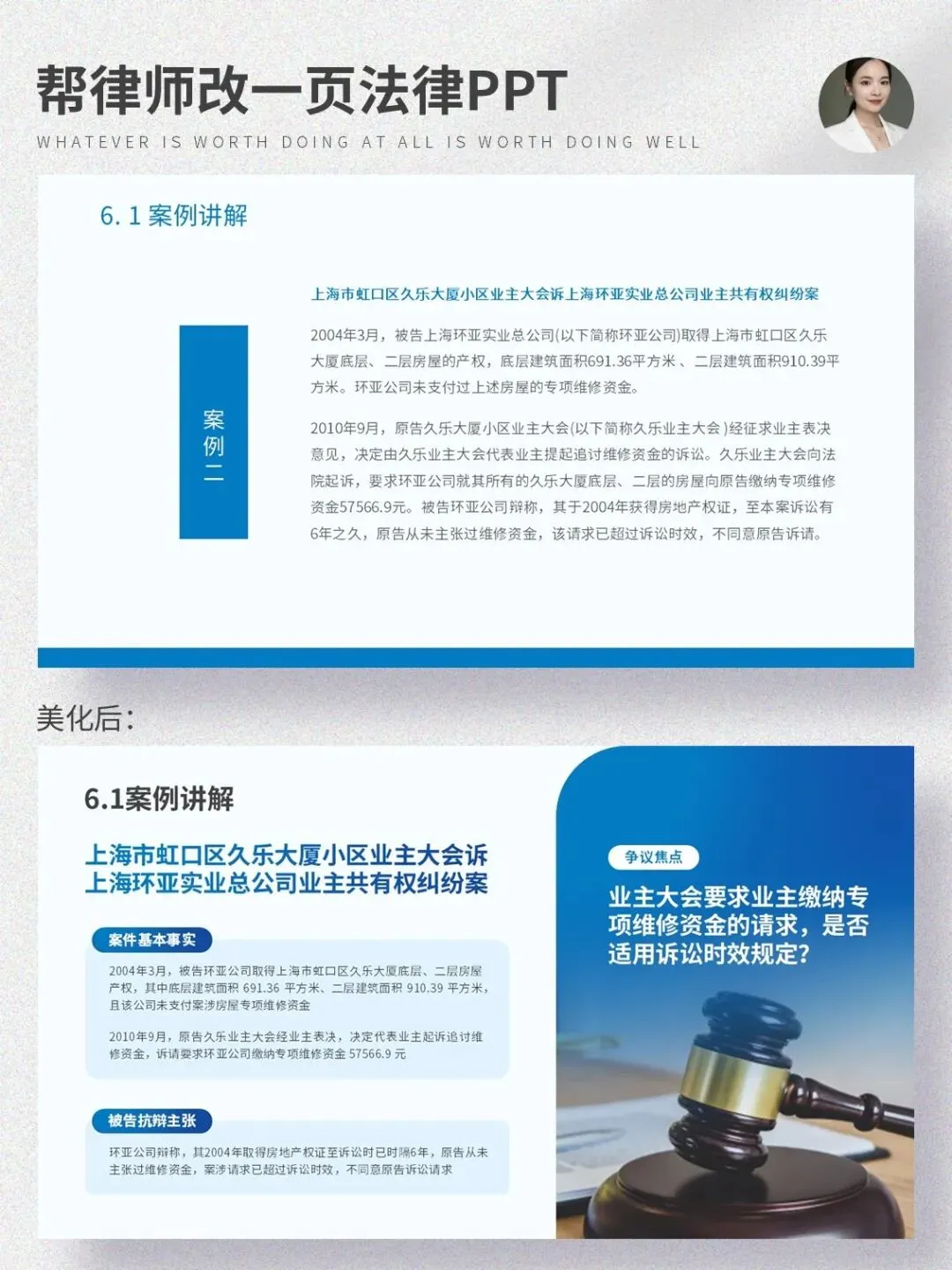 最近改了一页全是文字的法律案例PPT,从满屏密密麻麻的文字,改成清爽又专业的页面,我只按一套固定思路走,新手也能直接照搬: