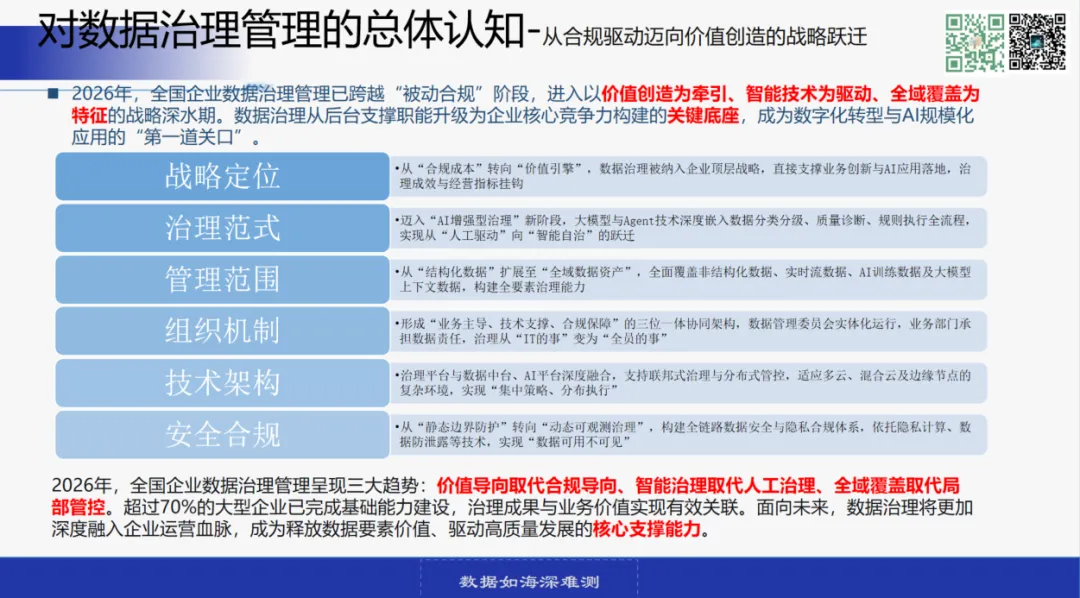 2026年作为“十五五”规划承上启下的关键节点,同时也是“数据要素价值释放年”,我国企业数据治理呈现三大核心特征: