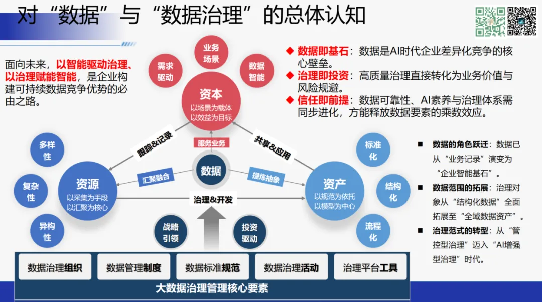 数据治理已从“IT支撑功能”上升为企业数字化转型的“核心刚需”,与数据资产入表(成本法计量)深度绑定。企业数据治理的目标从单一的合规管控,转向“合规筑基、资产增值、业务赋能”三位一体的价值创造导向。基于2026年全国企业数据治理实施趋势,数据治理已从“合规驱动”转向“价值驱动”,呈现以下特点: