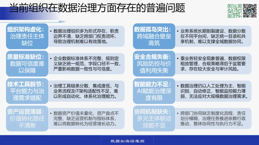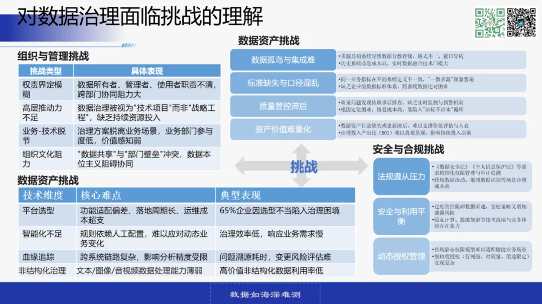 企业普遍面临数据权属界定模糊、跨部门协同壁垒高、数据利用与交易机制不成熟等瓶颈。数据资产入表实践虽已覆盖全国,但“入表后如何运营”成为新的攻坚课题,倒逼企业构建全生命周期的数据资产管理体系