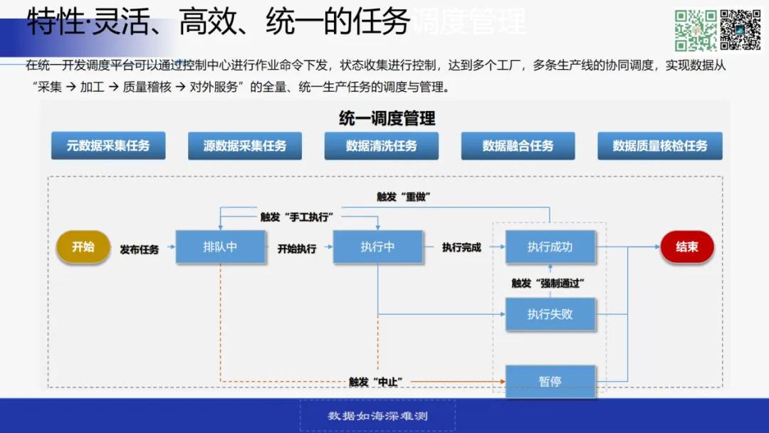 设计关键:质量必须可量化、可告警、可改进闭环,而非一次性检查。3.6 统一任务调度