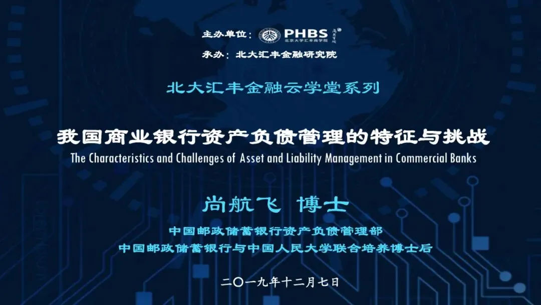 2019年12月7日晚,应北京大学汇丰金融研究院邀请,时任中国邮政储蓄银行资产负债管理部、中国邮政储蓄银行与中国人民大学联合培养博士后尚航飞博士做客“北大汇丰金融云学堂”,为大家带来主题为“我国商业银行资产负债管理的特征与挑战”的线上精彩分享。本文为视频回顾和讲义分享。