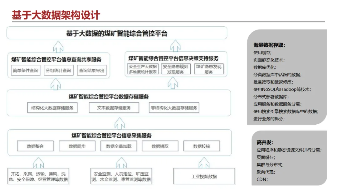 本方案围绕5G智能矿山建设需求,提出了集数据采集、协同控制与智能决策于一体的综合管控平台架构。平台以国家煤矿智能化政策为导向,针对矿山行业存在的设备管理分散、数据孤岛严重、安全风险高、人员老龄化等核心痛点,构建基于工业互联网的统一数据共享与业务协同体系。技术上,平台采用微服务架构、GIS一张图、数字孪生、大数据及AI视觉识别等手段,实现对矿井采掘、通风、排水、供电、运输等系统的全面感知与智能联动,并支持移动APP与三维可视化多端展示,提升管理的直观性与响应效率。核心功能覆盖智能机电控制、安全监测、设备全生命周期管理、生产调度及应急救援等模块,并通过AI视觉识别技术实现隐患识别与人员行为监测。方案已在龙煤集团、陕北矿业等企业落地,有效支撑了安全生产标准化与智能化升级。