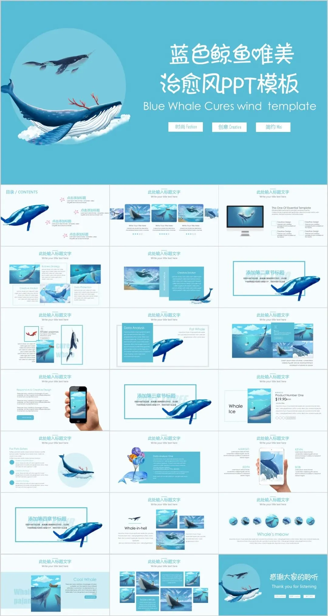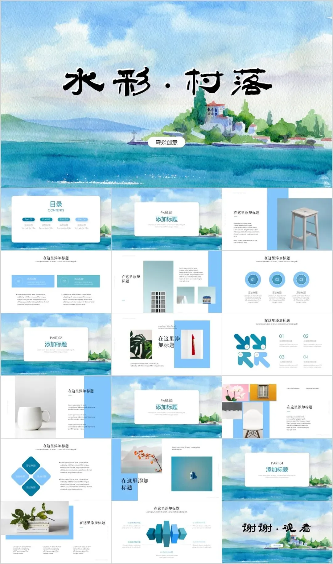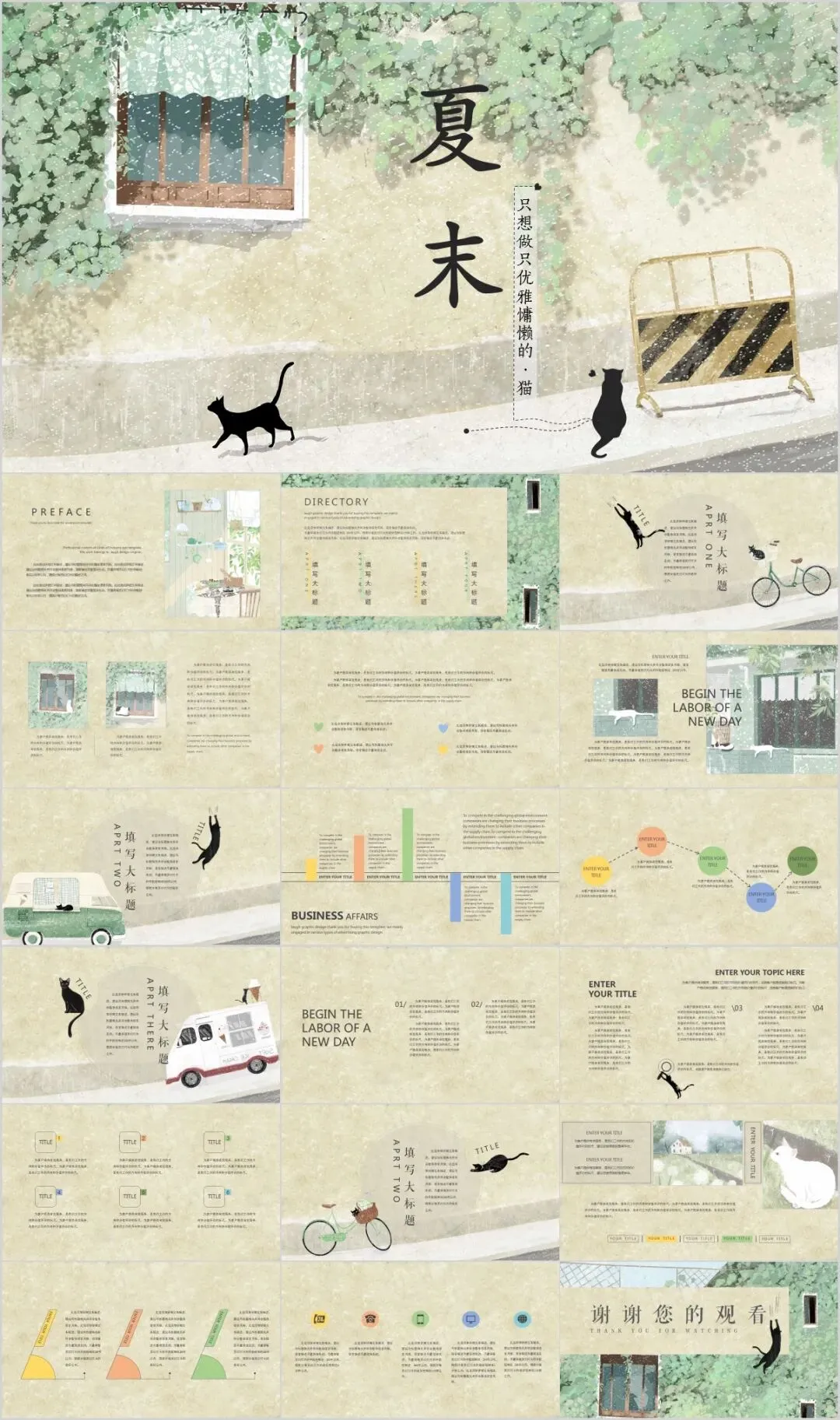 108套清爽夏天夏日风ppt模板