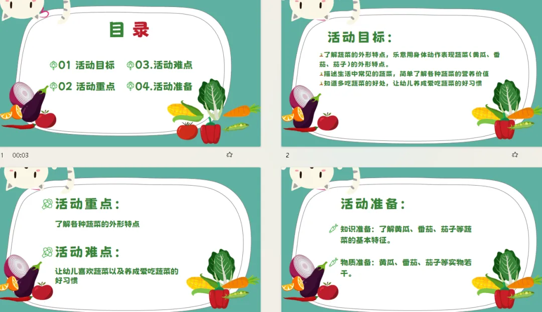 活动难点:让幼儿喜欢蔬菜以及养成爱吃蔬菜的好习惯