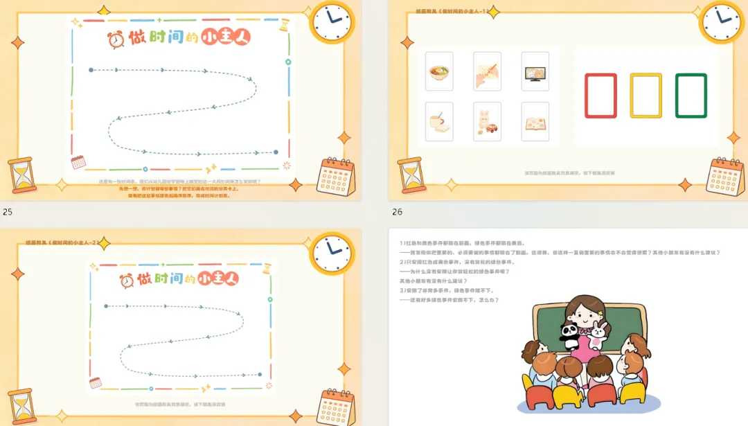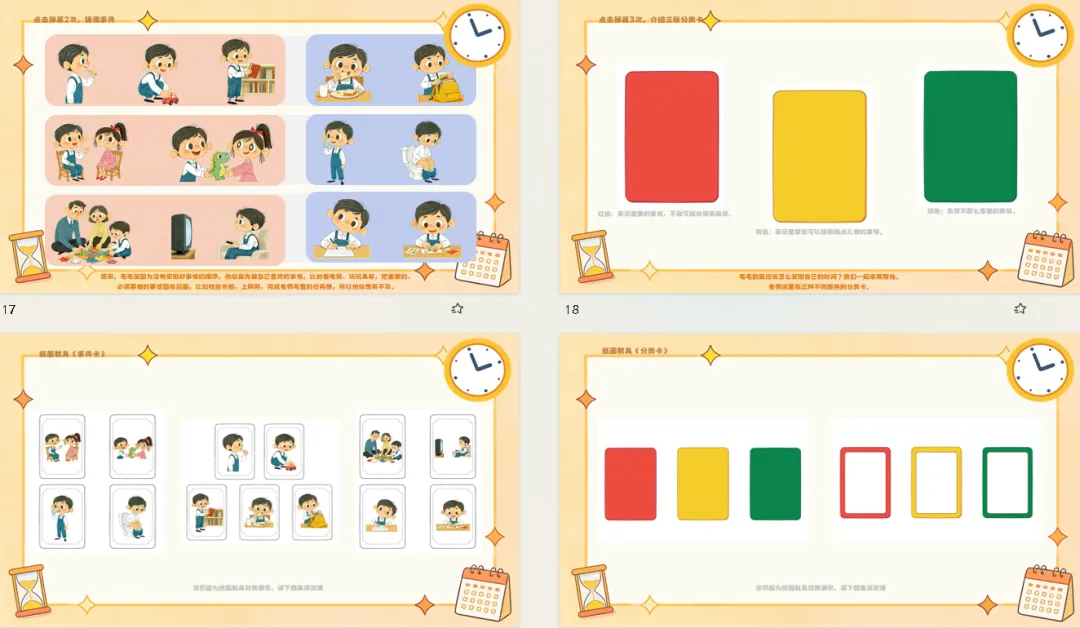 l纸面教具:《事件卡》《分类卡》《做时间的小主人》。