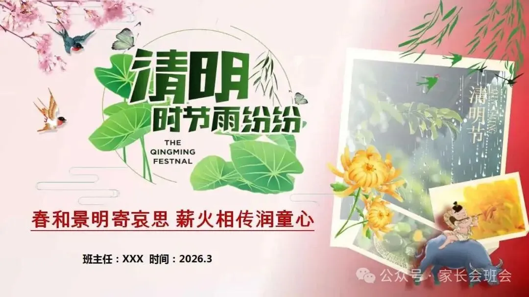 >【通用】清明节主题班会ppt,清明起源、习俗、缅怀先烈,假期安全.含讲稿