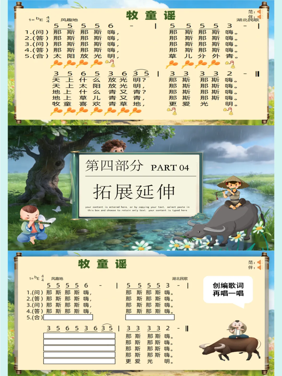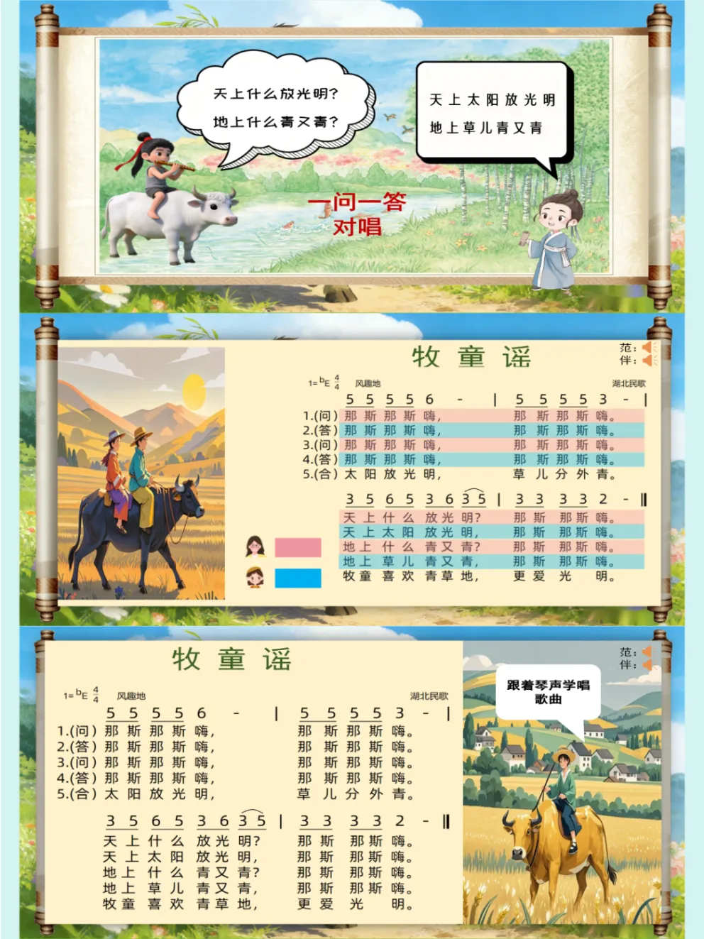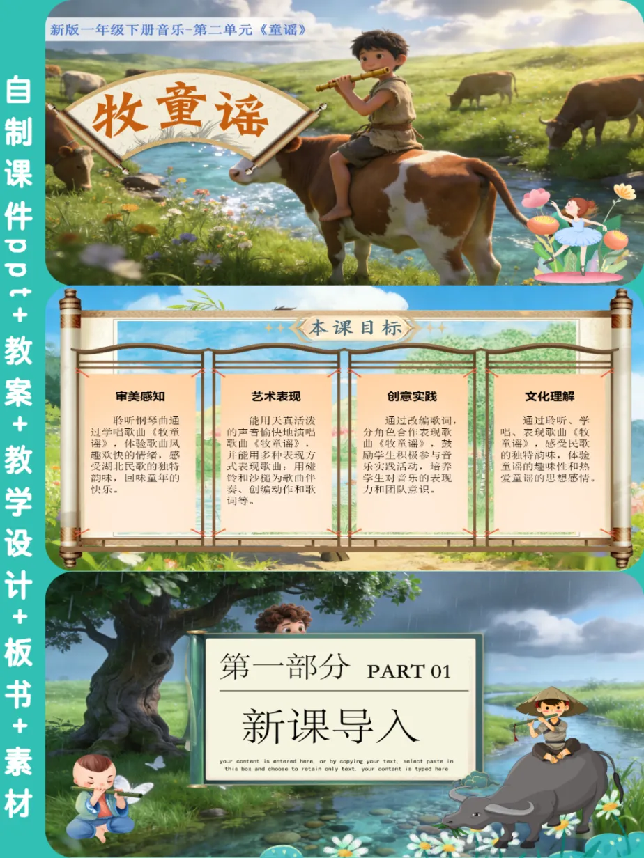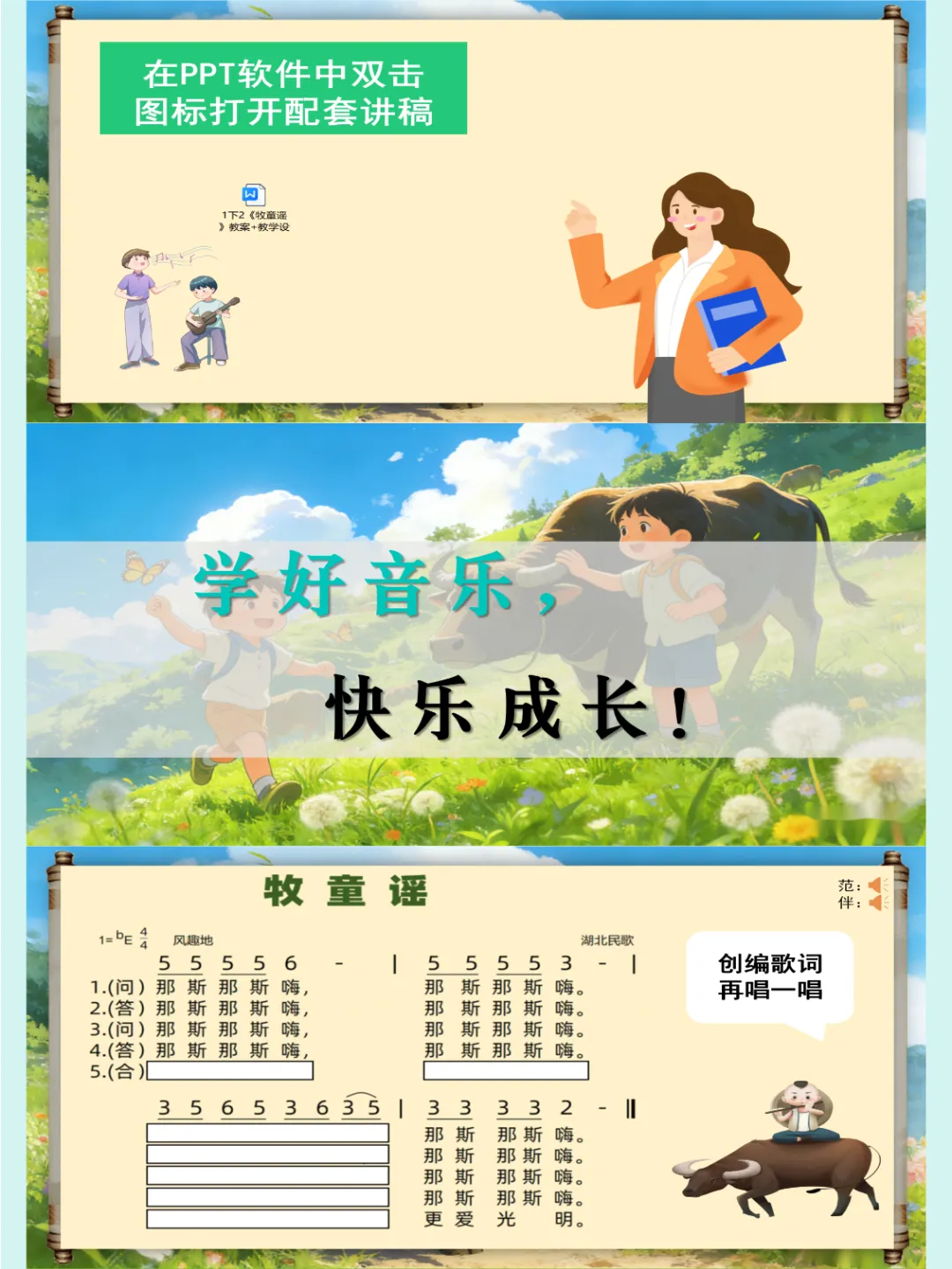 人音版🎸新版一年级音乐下册《牧童谣》公开课课件ppt,自制音乐课件ppt,共27页,音频已插入,可编辑😘😜