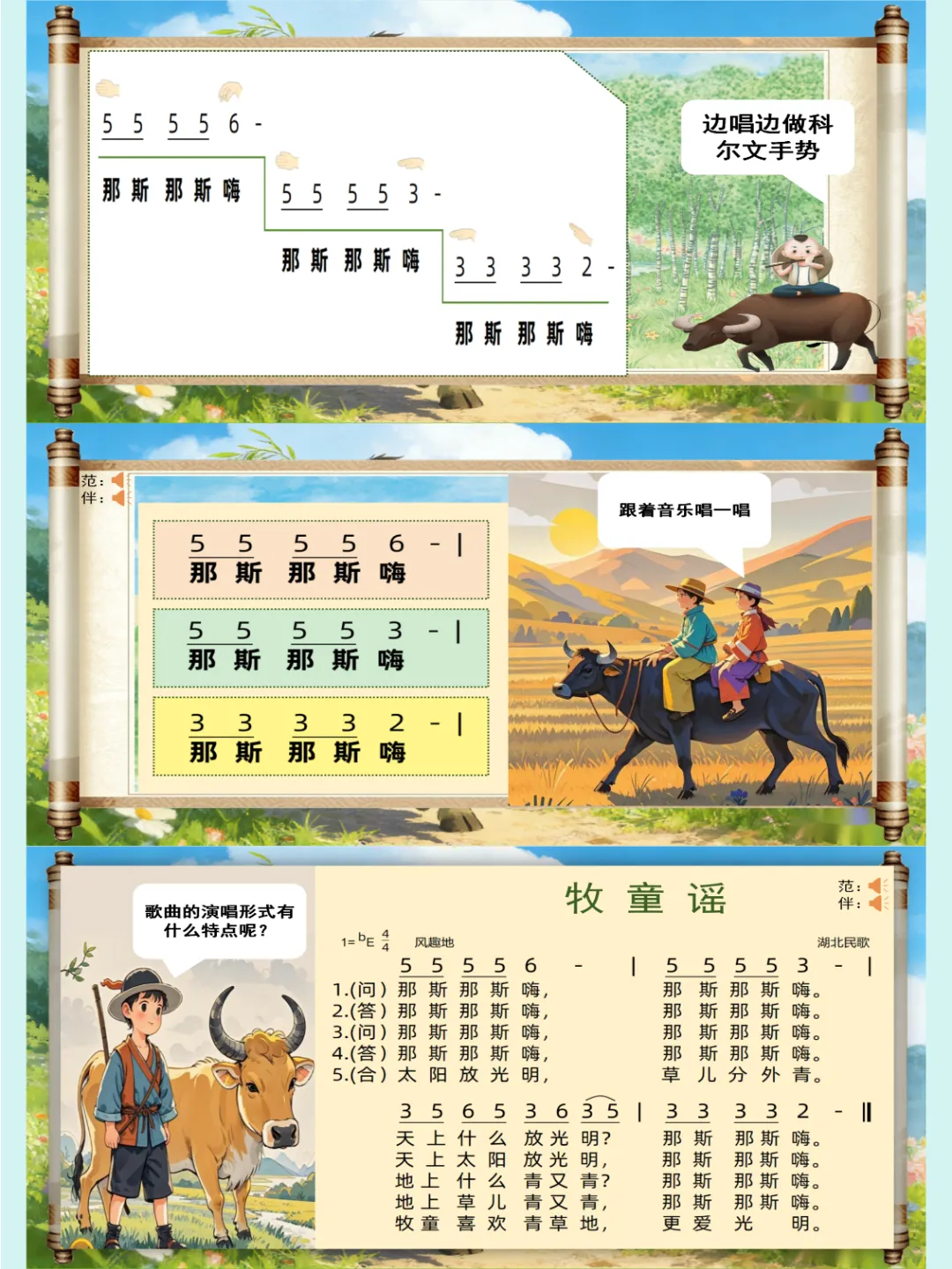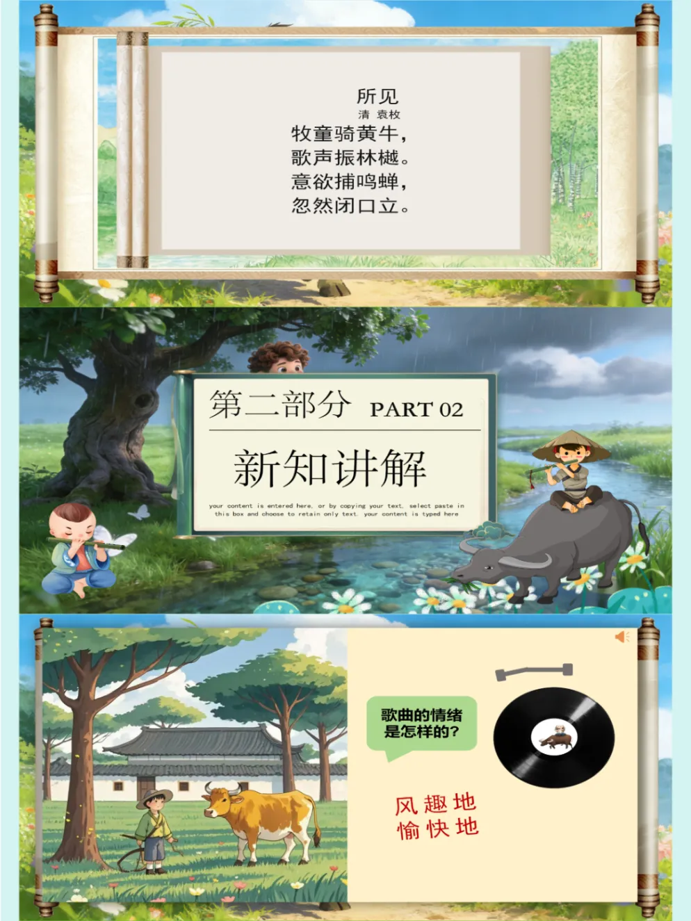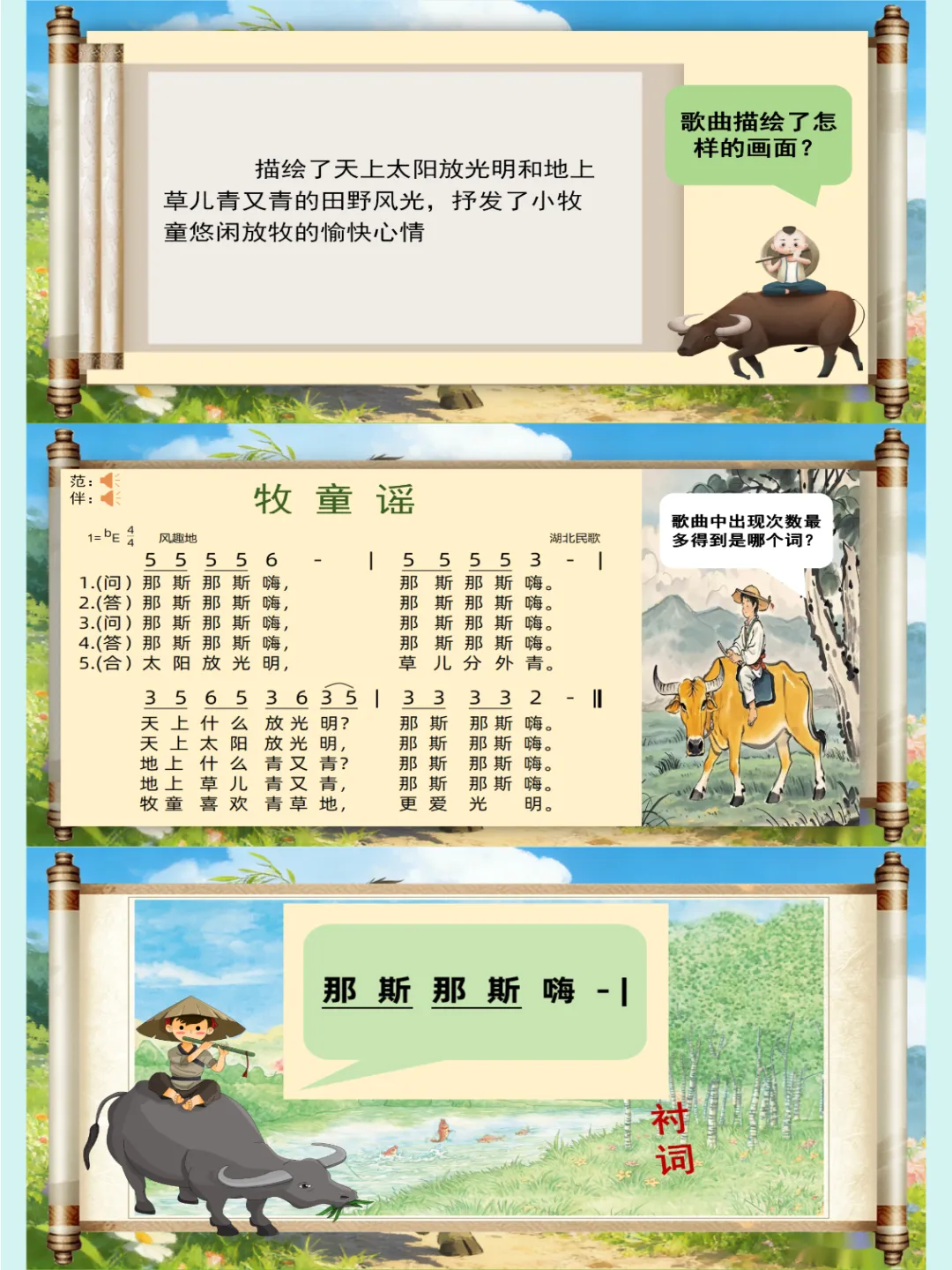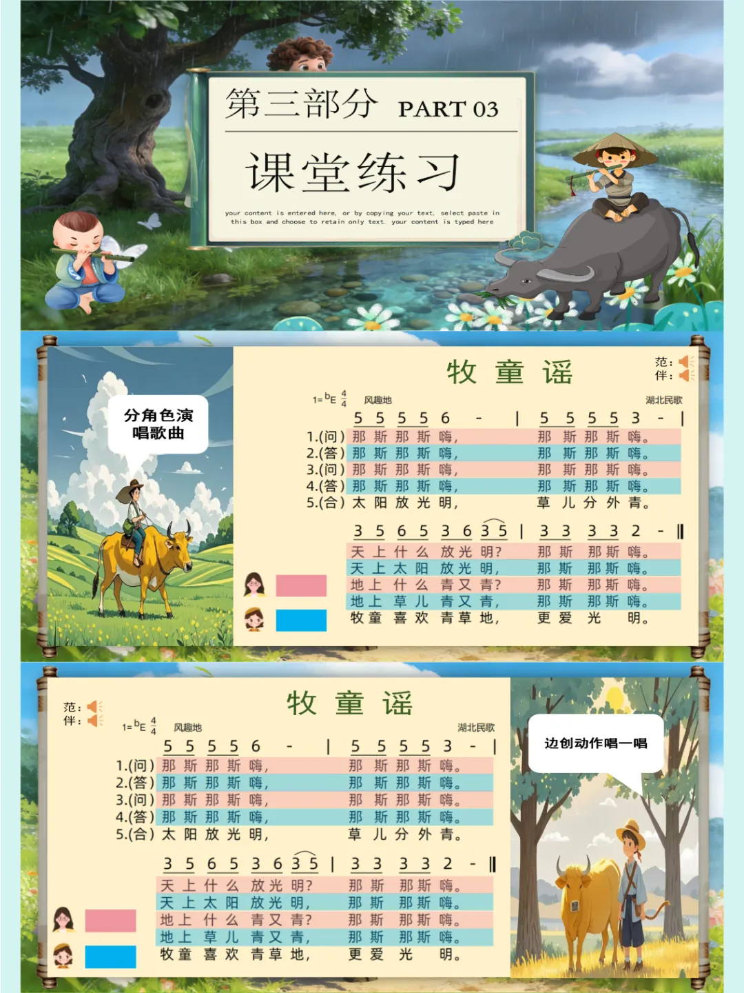 人音版🎸新版一年级音乐下册《牧童谣》公开课课件ppt,自制音乐课件ppt,共27页,音频已插入,可编辑😘😜