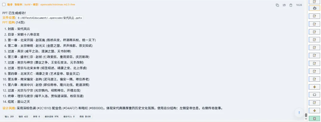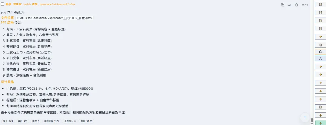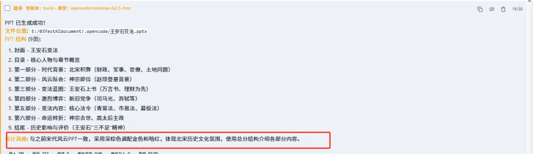 虽然第一次生成了 但是完全没有按照我们提供的模板进行编写PPT,那我们这次就更明确一点设计风格按照给定模板