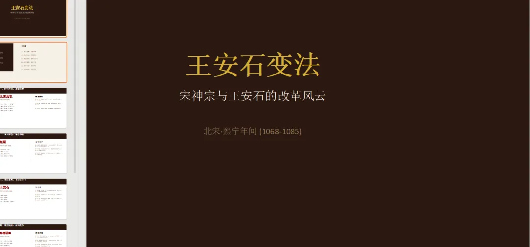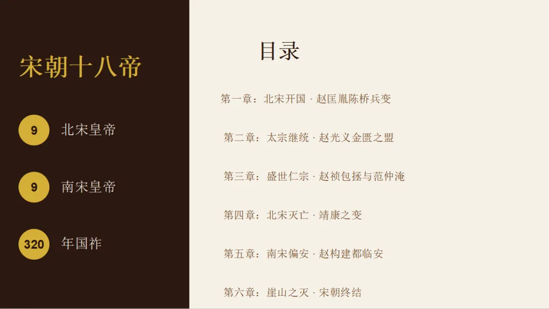 我们使用一个固定模板也创建一个宋朝历代皇帝故事的PPT
