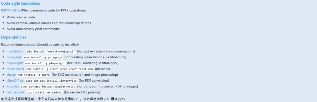 PPTX 技能是用于创建、编辑和分析 PowerPoint (.pptx) 文件的专业工具集。该技能支持从零创建PPT、基于模板修改内容、提取和分析现有文件等核心功能。