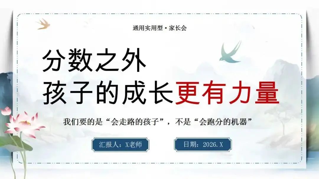 【通用】中小学家长会ppt:分数之外,孩子的成长更有力量。