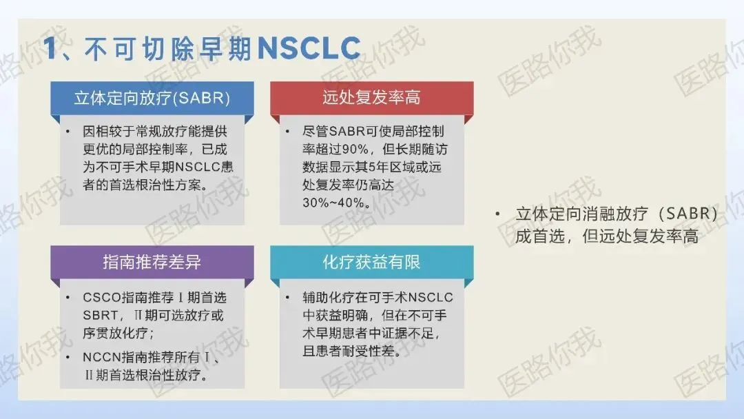 “不可切除肺癌”并非意味着无药可医,其定义为:因肿瘤位置特殊、体积较大,或患者身体状况(如高龄、合并基础疾病)不适合手术,无法通过手术彻底切除病灶。这类患者就是依靠放疗、免疫治疗、化疗等综合手段,精准控制肿瘤、延长生存期、提高生活质量,而新共识,就是给这份“综合治疗”划好了最优路线。