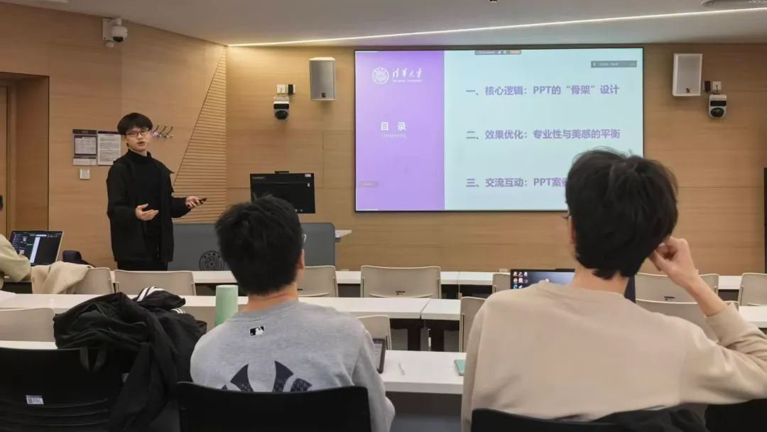 唐子航学长从PPT框架设计入手,系统讲解金字塔原理与MECE原则的实战应用,指导大家先明确汇报答辩的目标与受众,梳理整体结构、分模块搭建内容框架。他强调PPT的核心价值在于梳理思维、传递信息,建议大家反复打磨框架、提炼亮点。