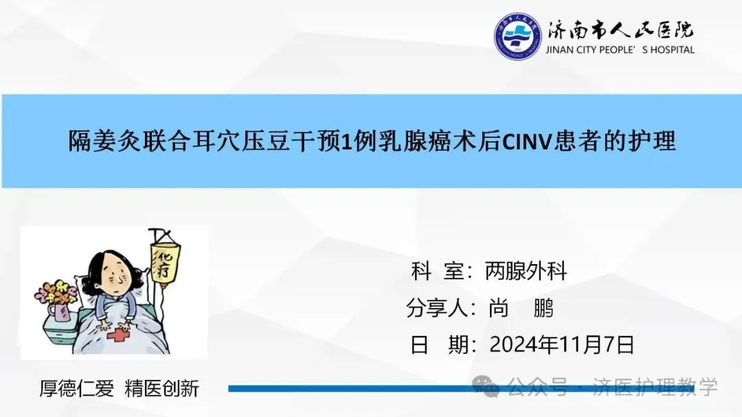 >【PPT】隔姜灸联合耳穴压豆干预1例乳腺癌术后CINV患者的护理