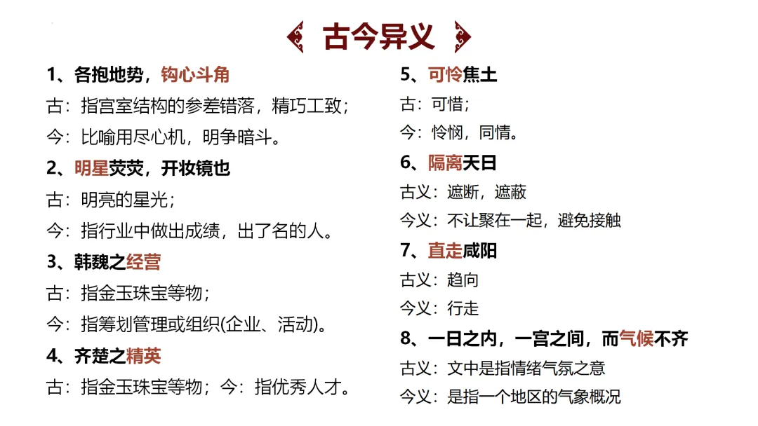 教师梳理易错点,总结重点文言知识,避免死记硬背。