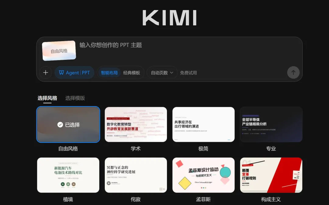 💼 商务汇报 → Kimi PPT(设计感强,高级感满满)