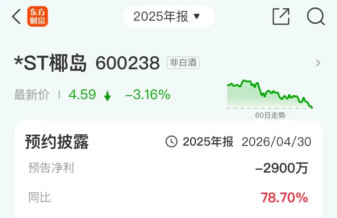 信息显示,*ST椰岛预计于今年4月30日披露2025年度报告。随着年报公布日期越来越近,在资本市场几乎已经被送进ICU的*ST椰岛,再次成为媒体讨论的热门话题之一。