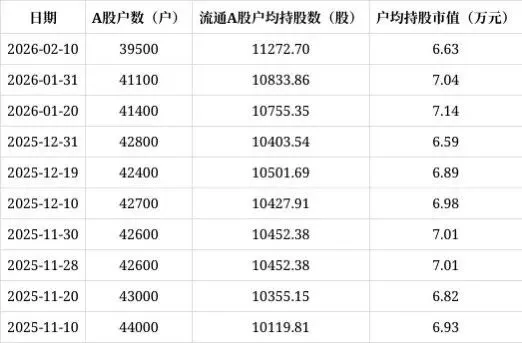 股东数量方面,从2025年11月10日到2026年2月10日的三个月时间里,*ST椰岛的股东数锐减了4500户,进一步彰显了市场对*ST椰岛退市的担忧。而在2025年2月到2026年2月这一年多时间里,*ST椰岛的股东数已经从7.47万户减少到了3.95万户,降幅高达47.12%。