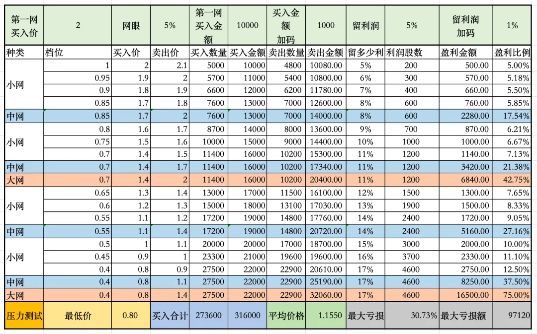 网格策略模板更新网格改为按金额确定买入份数,增加留利润功能,压力测试更加明白清楚。