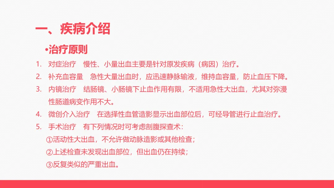 - 急性大出血:快速补充血容量是首要任务,同时配合药物、内镜、介入或手术止血。