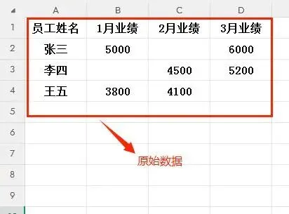 要实现的目标:提取所有非空单元格的业绩数据