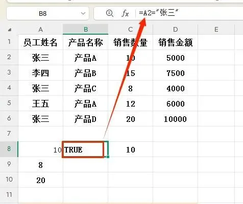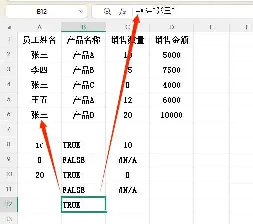- A6="张三" → TRUE