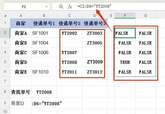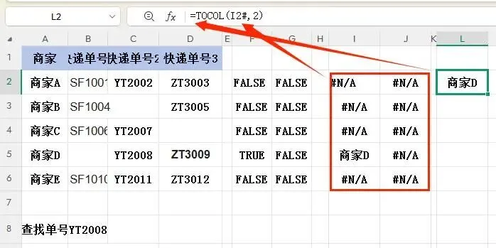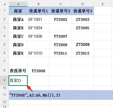 查找目标:根据快递单号"YT2008"查找对应的商家