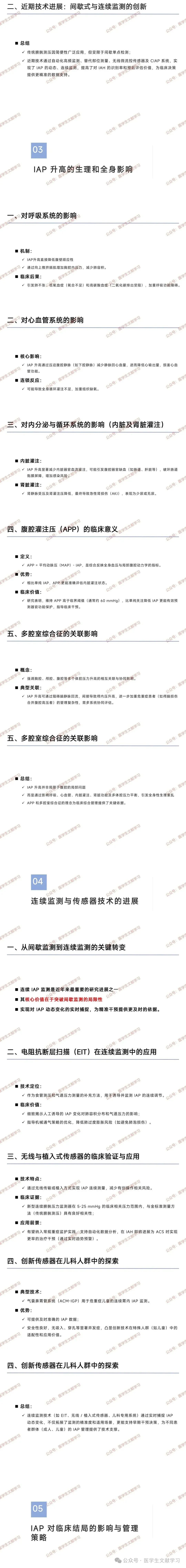 新型技术:结合导管传感器、光纤监测等,可实时、持续记录 IAP 变化。