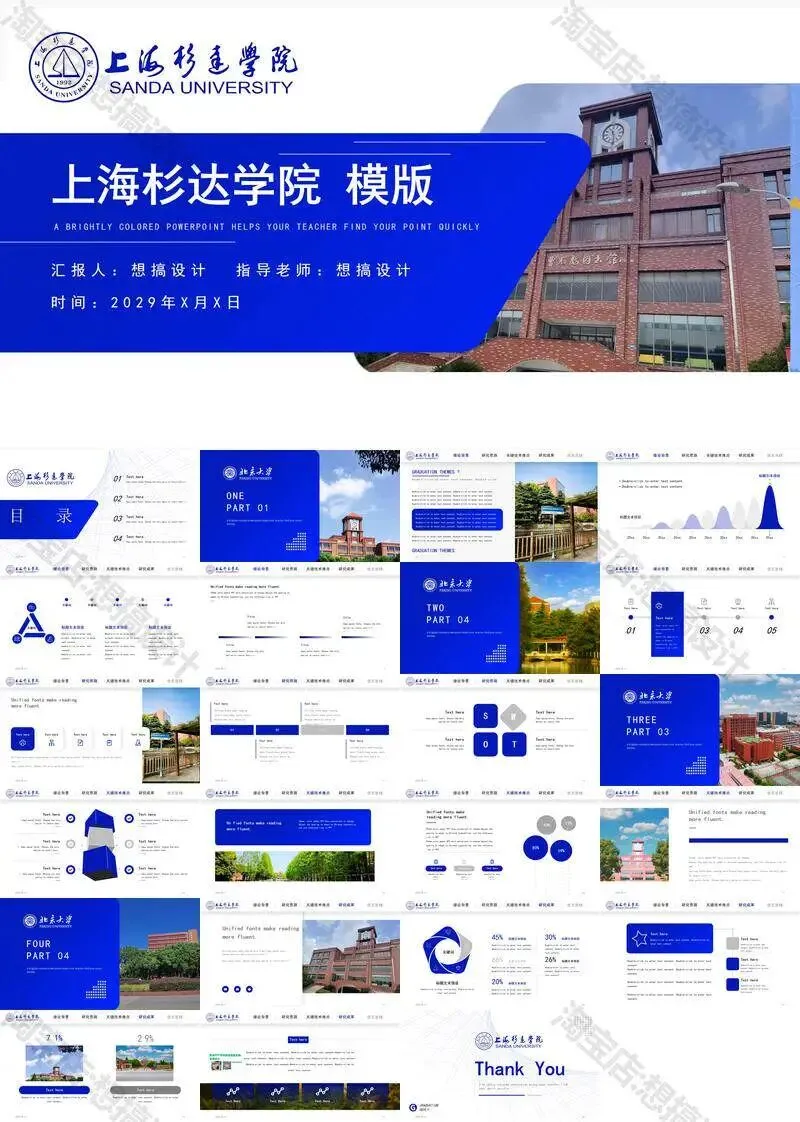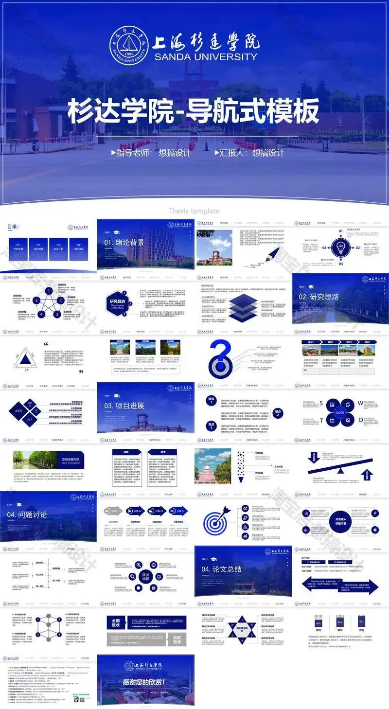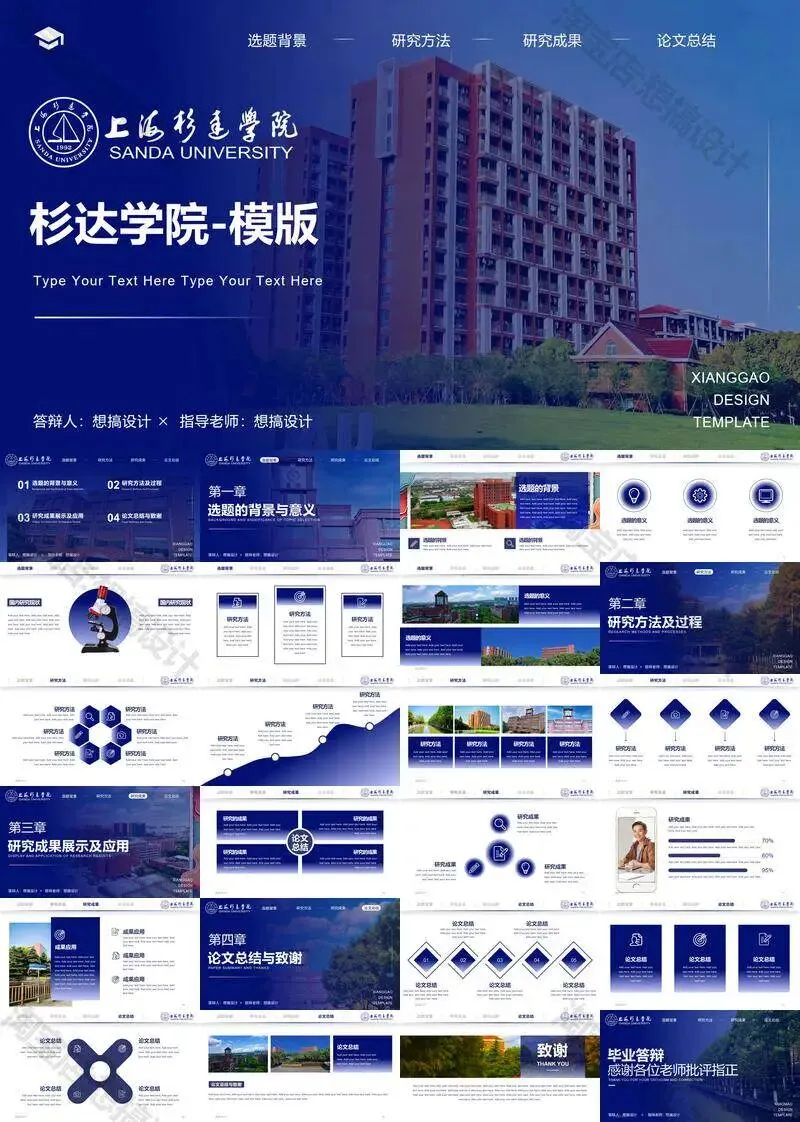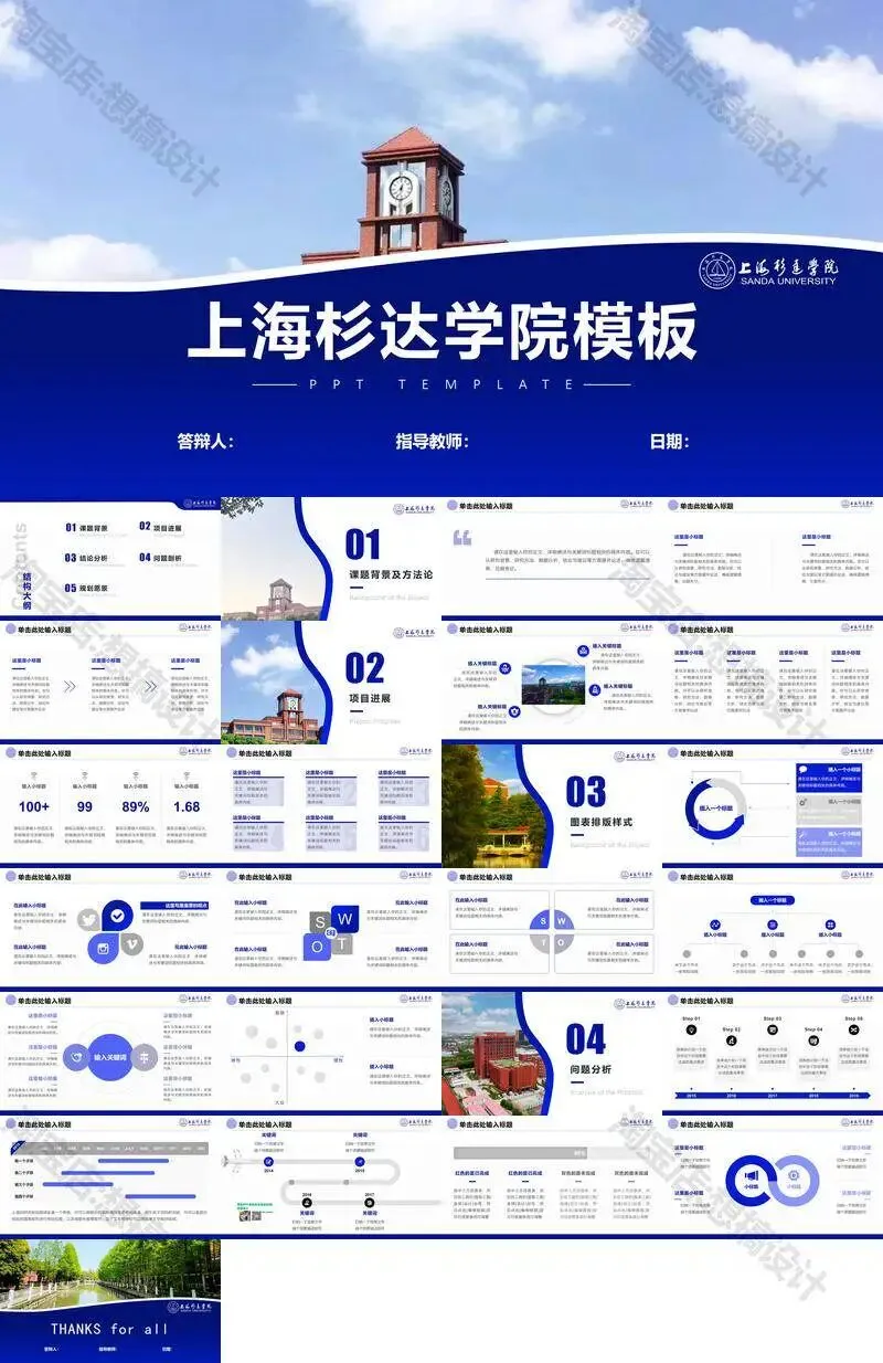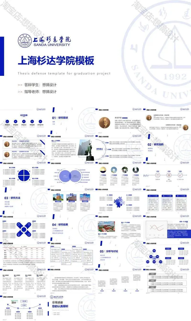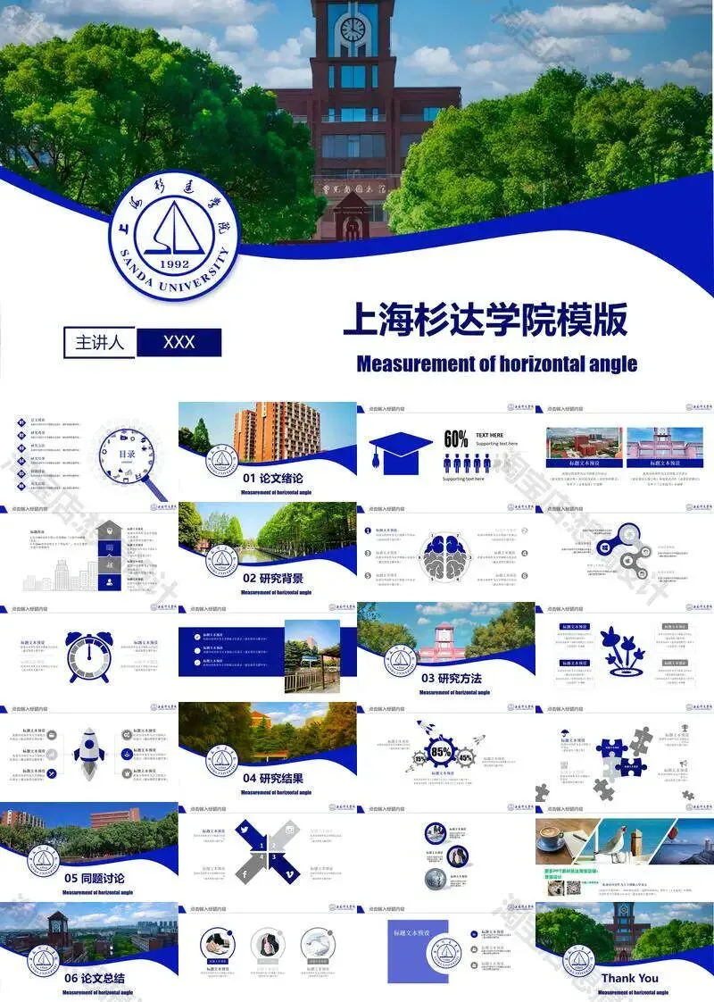>上海杉达学院PPT模板中期组会毕业答辩课题