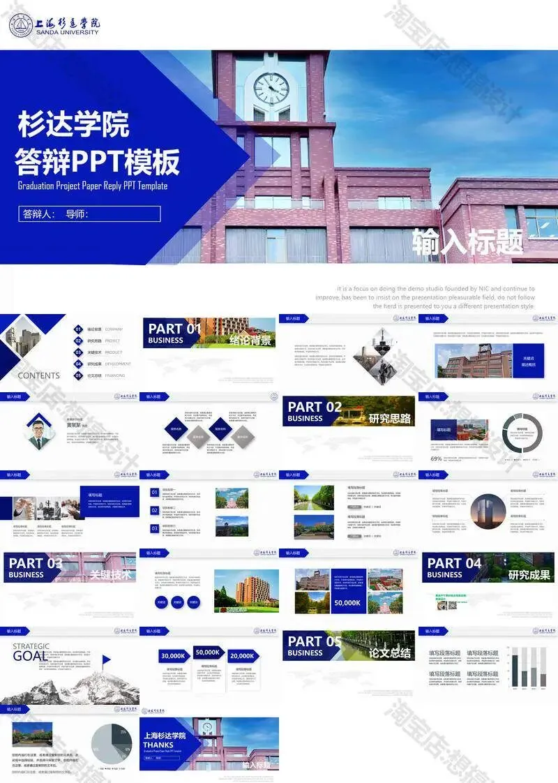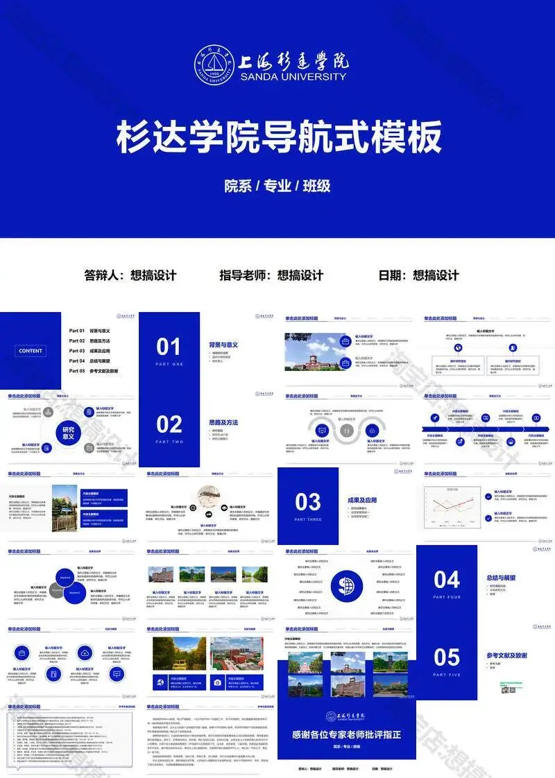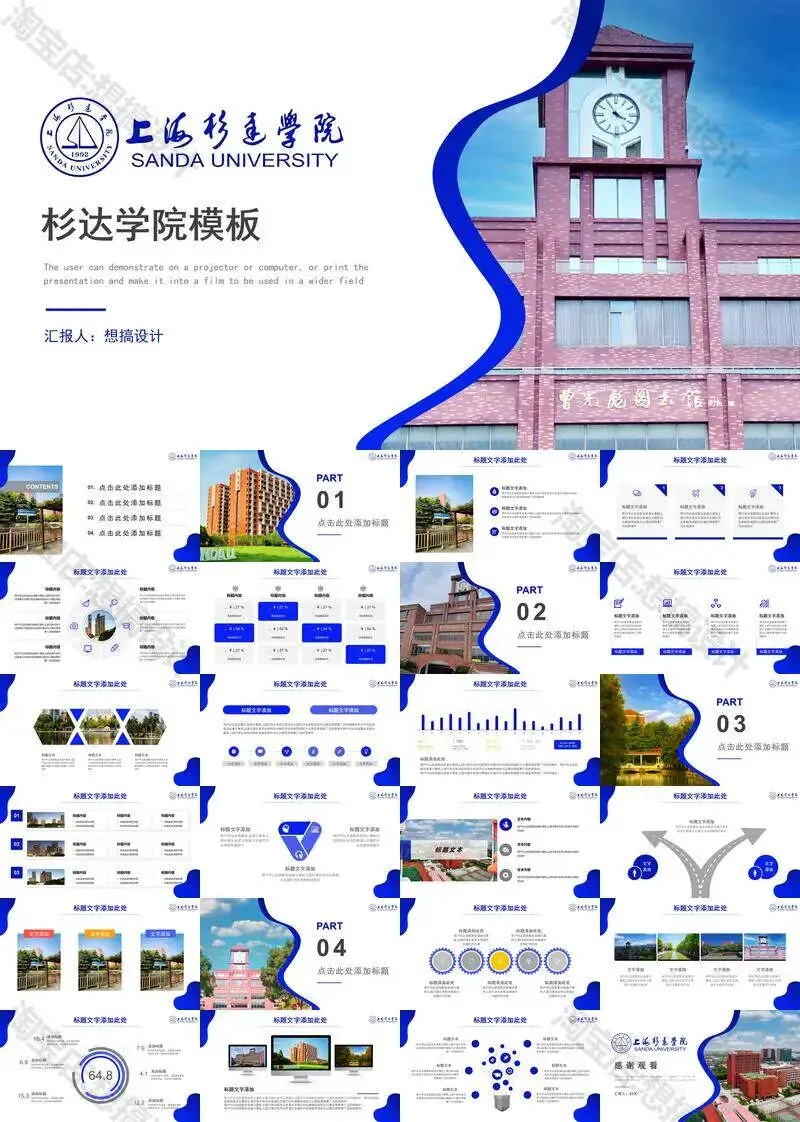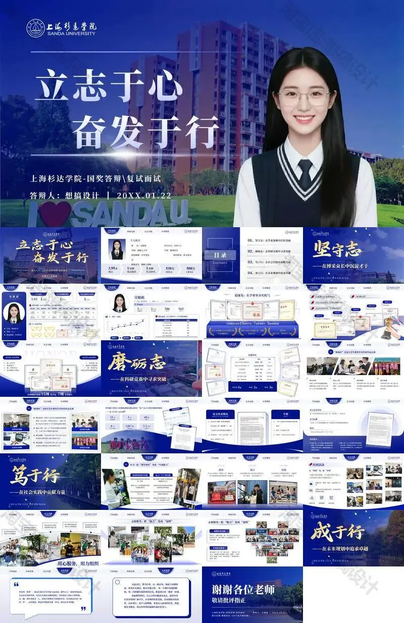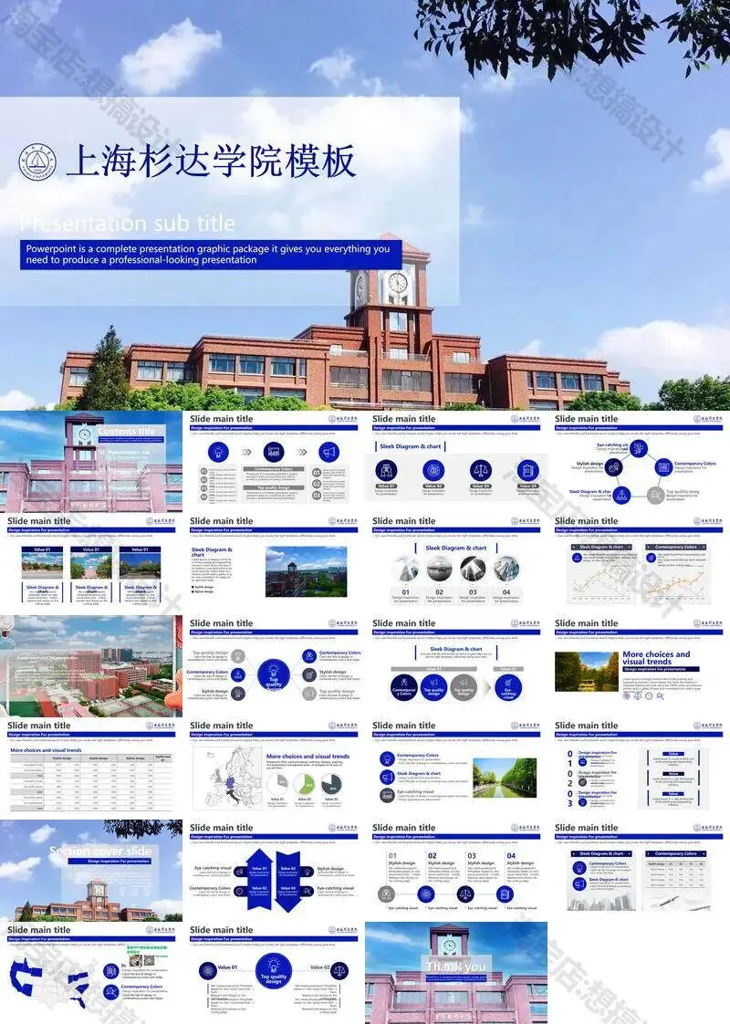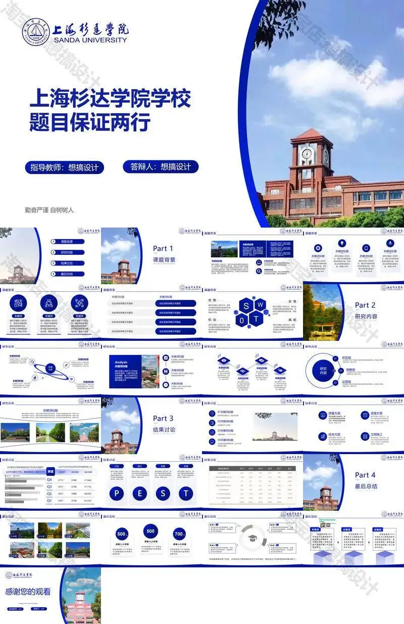 >上海杉达学院PPT模板中期组会毕业答辩课题