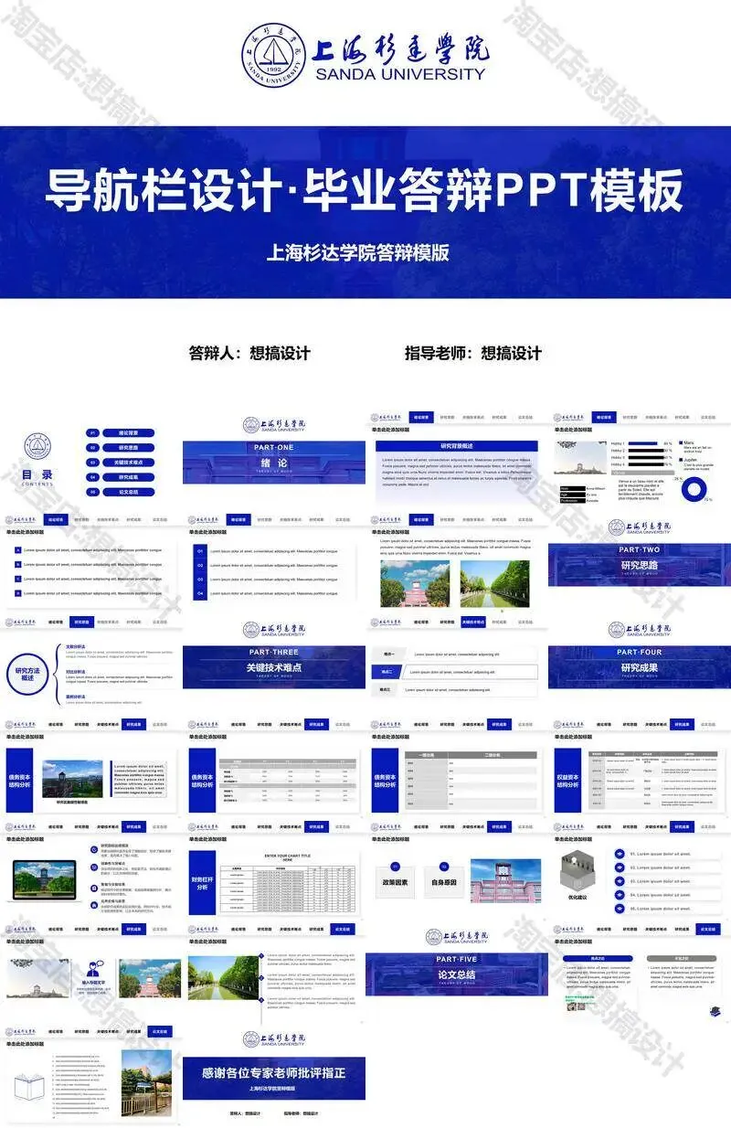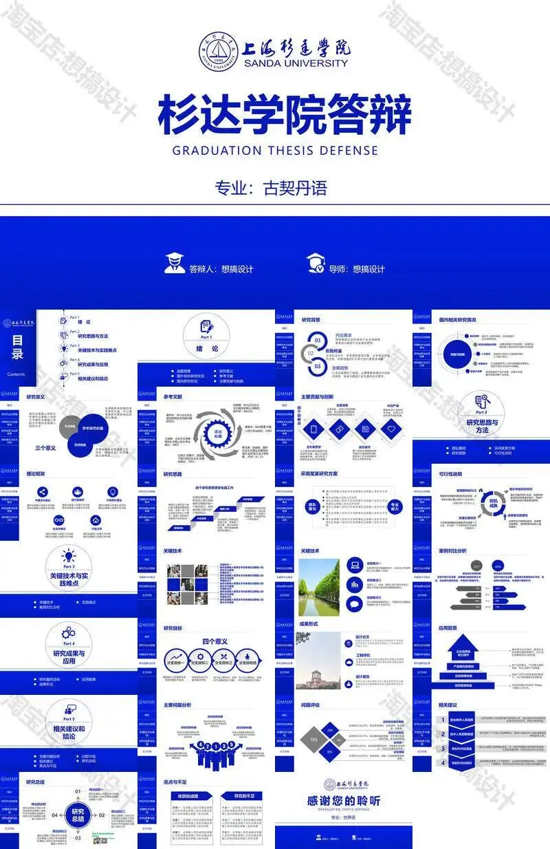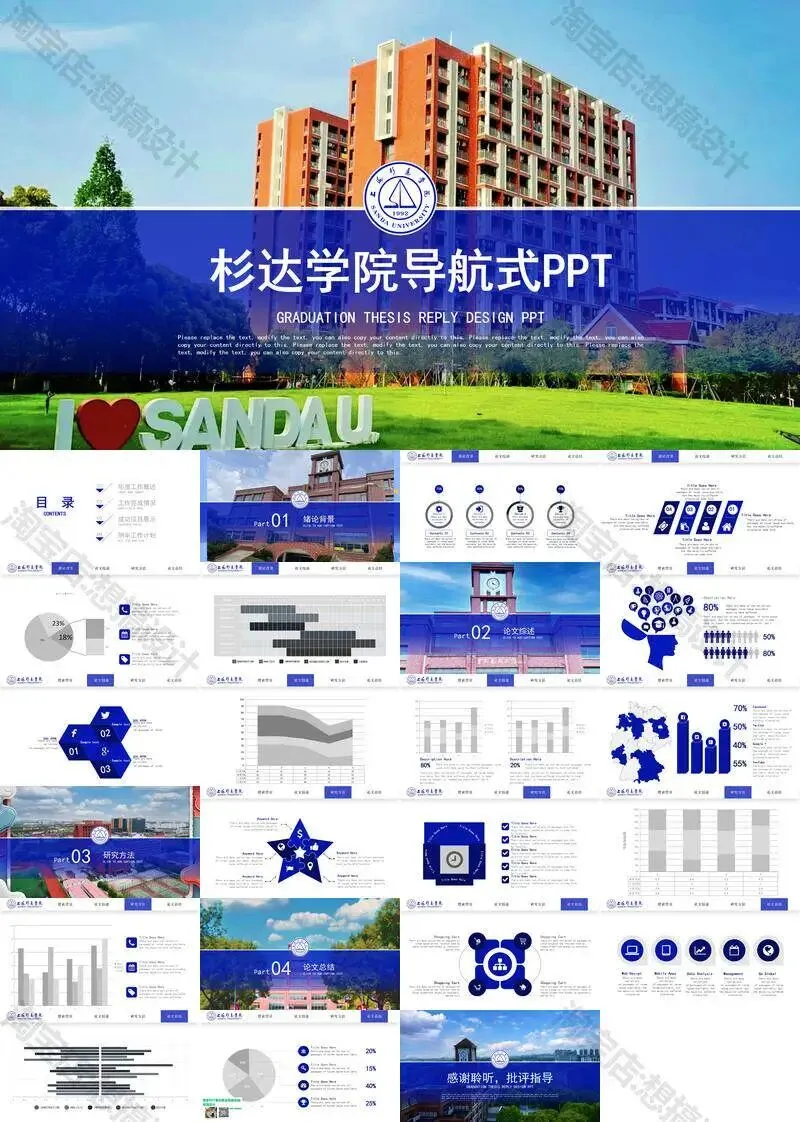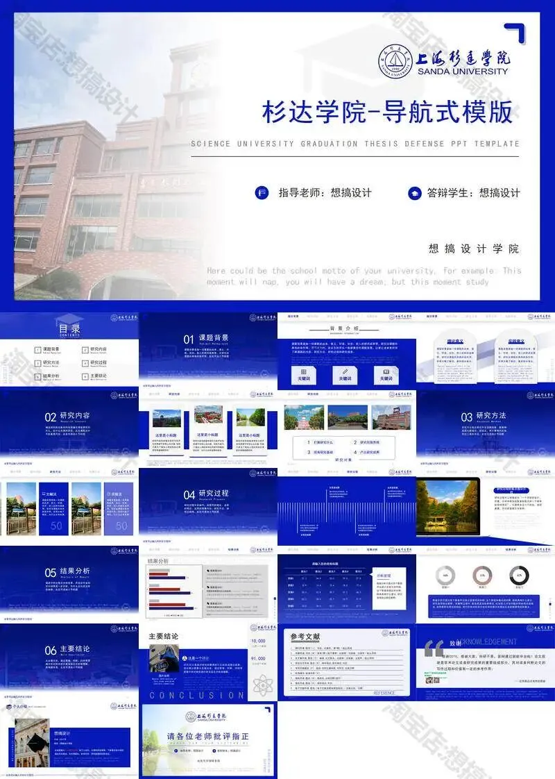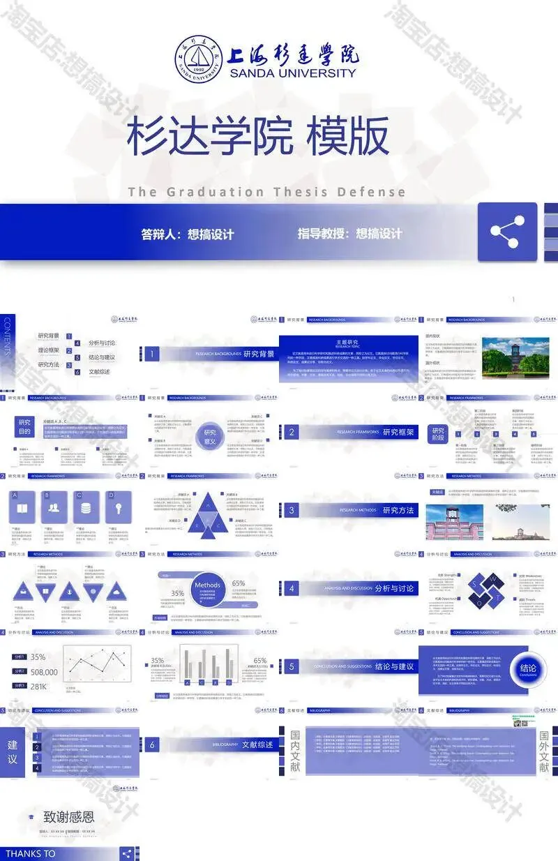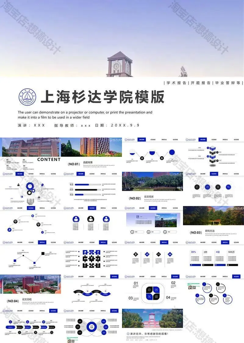 >上海杉达学院PPT模板中期组会毕业答辩课题