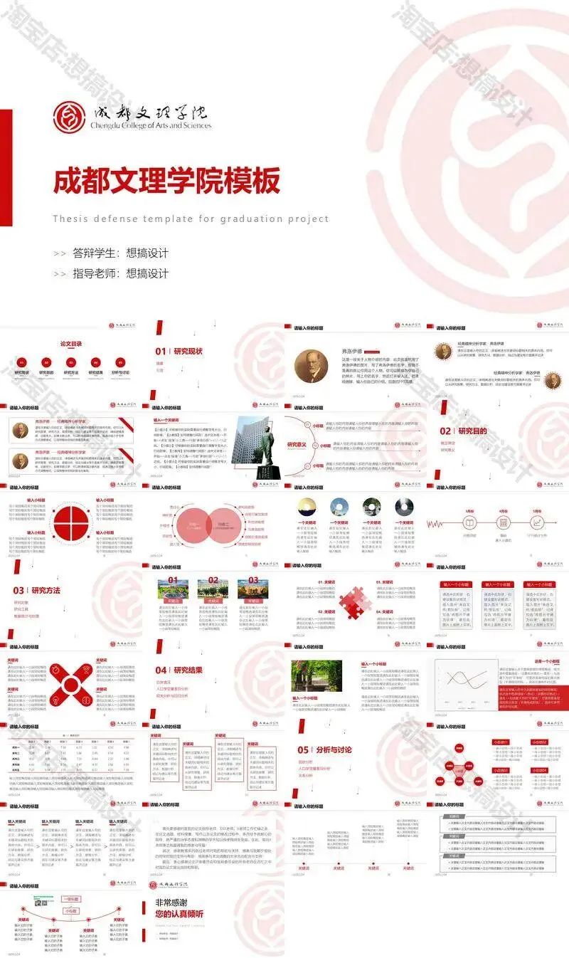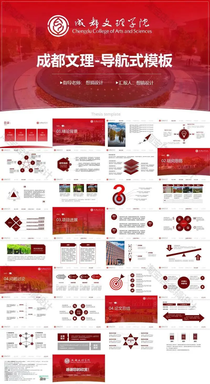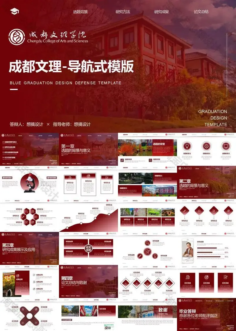 成都文理学院毕业答辩PPT模板汇报幻灯片课件总结大学生作品
