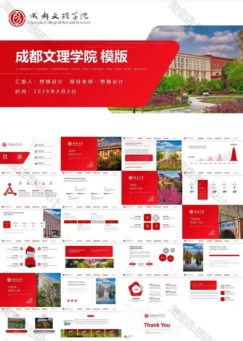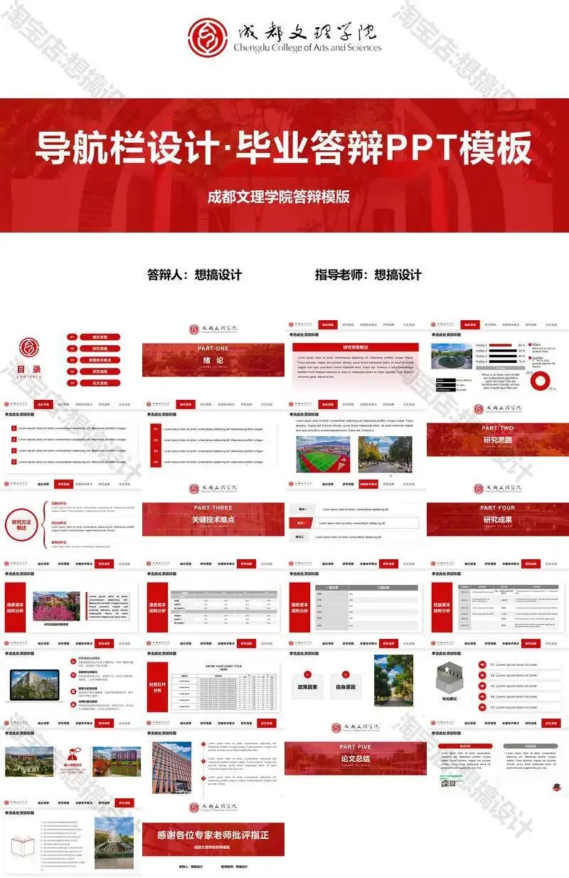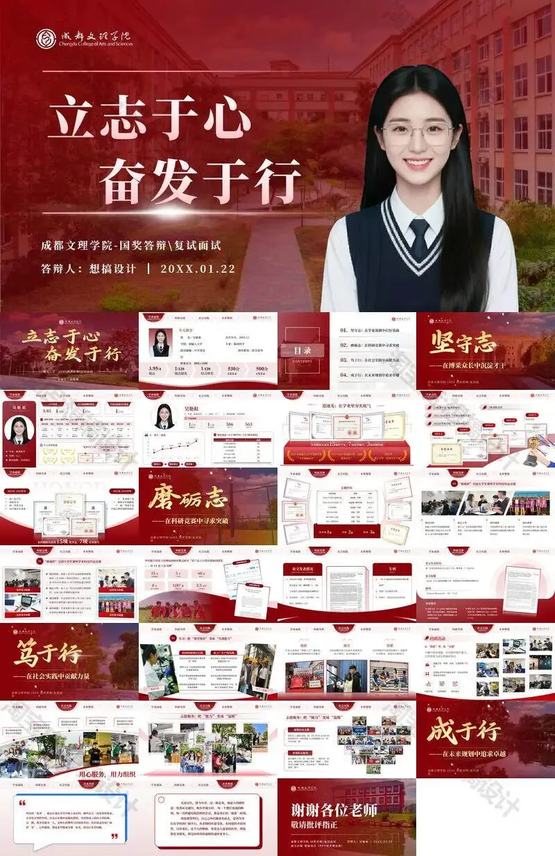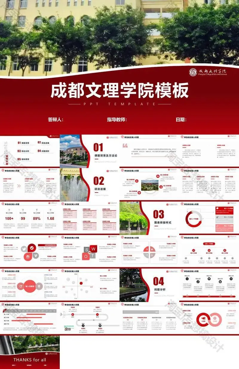 成都文理学院毕业答辩PPT模板汇报幻灯片课件总结大学生作品