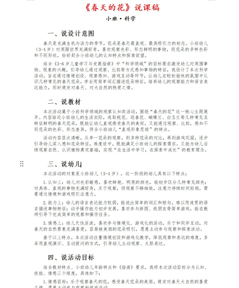 >小班科学《春天的花》说课稿+说课PPT+教案+课件