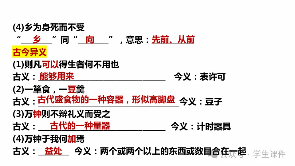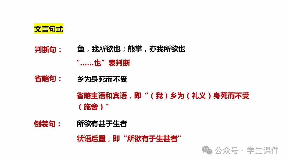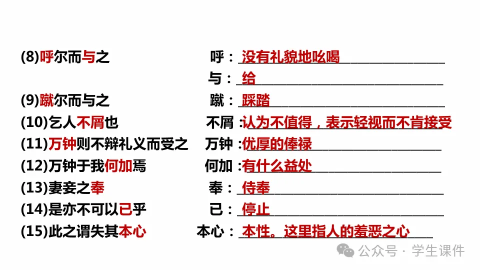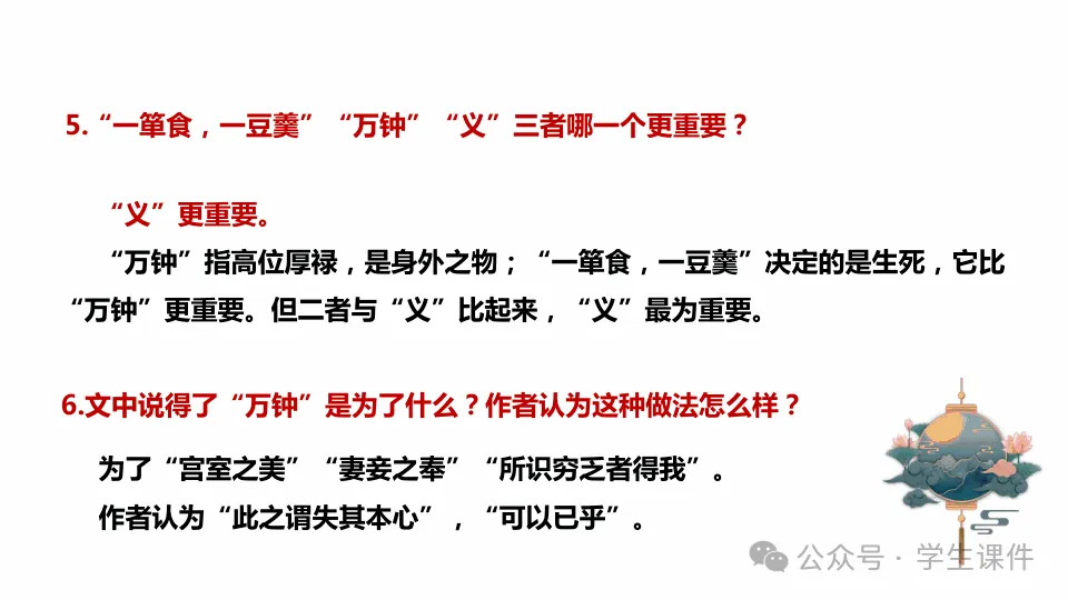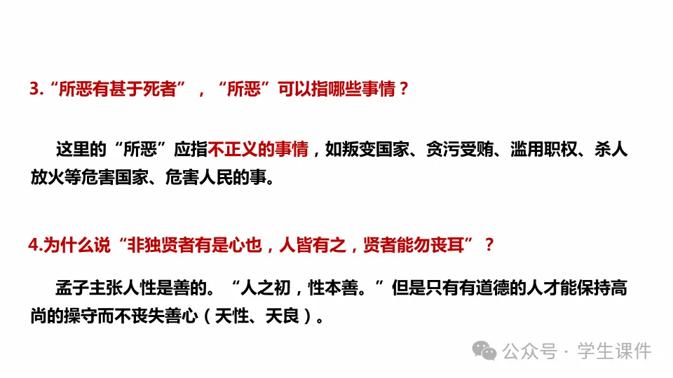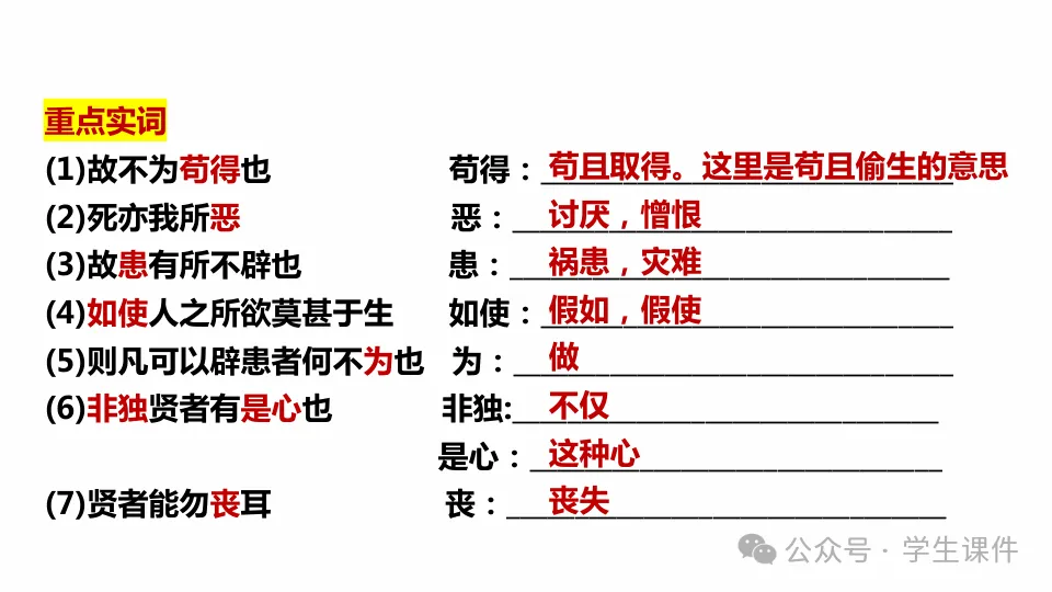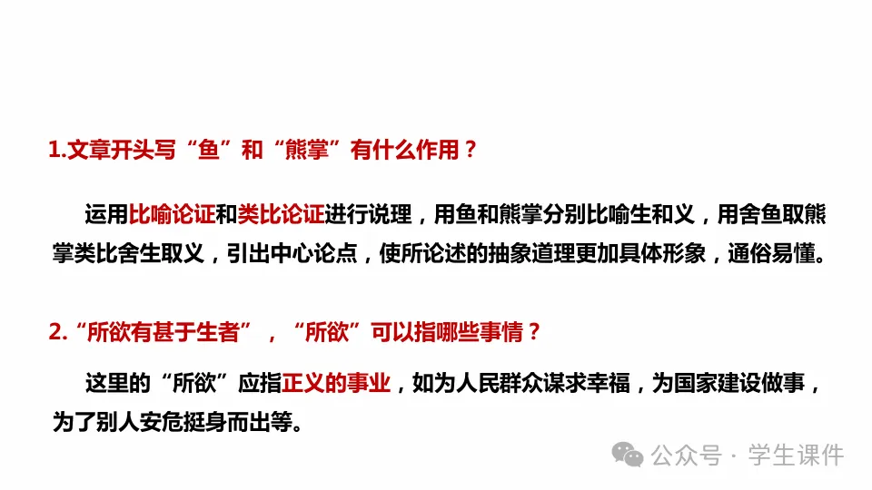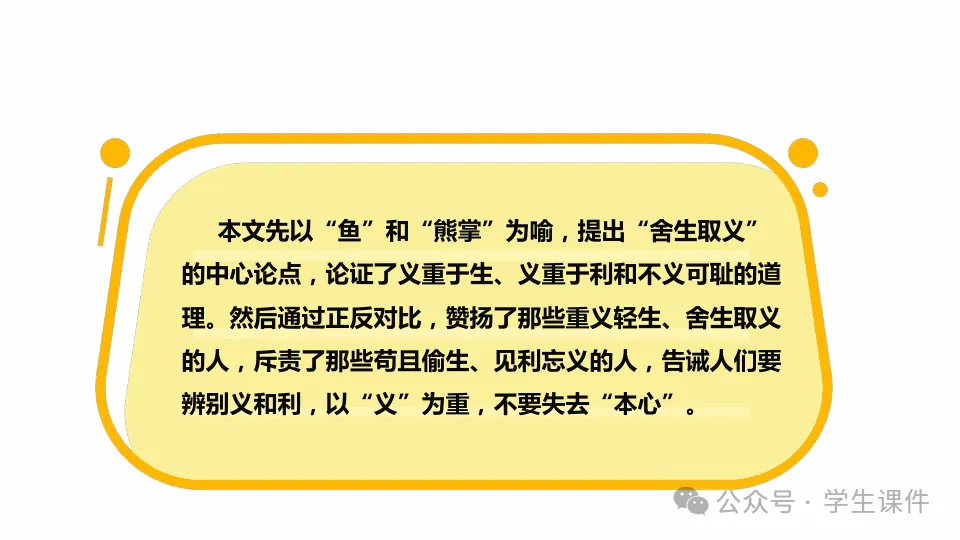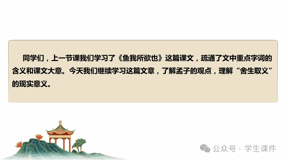 当前位置:首页>PPT>PPT课件 课文9.鱼我所欲也(第二课时)(九年级语文下册)