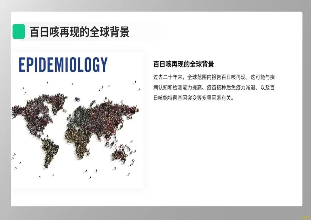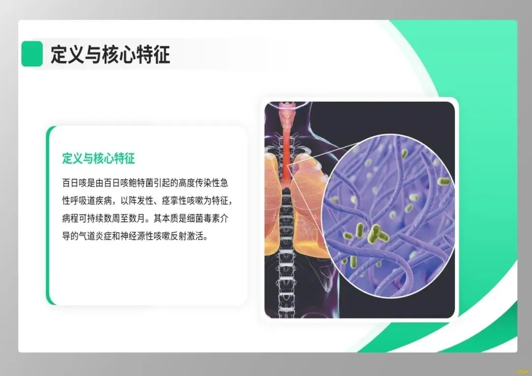 大家好!今天我们护理查房的主题是“儿童百日咳”。近年来,“百日咳再现”已成为全球公共卫生挑战,而在我国,耐药菌株的流行使得临床护理面临全新考验。