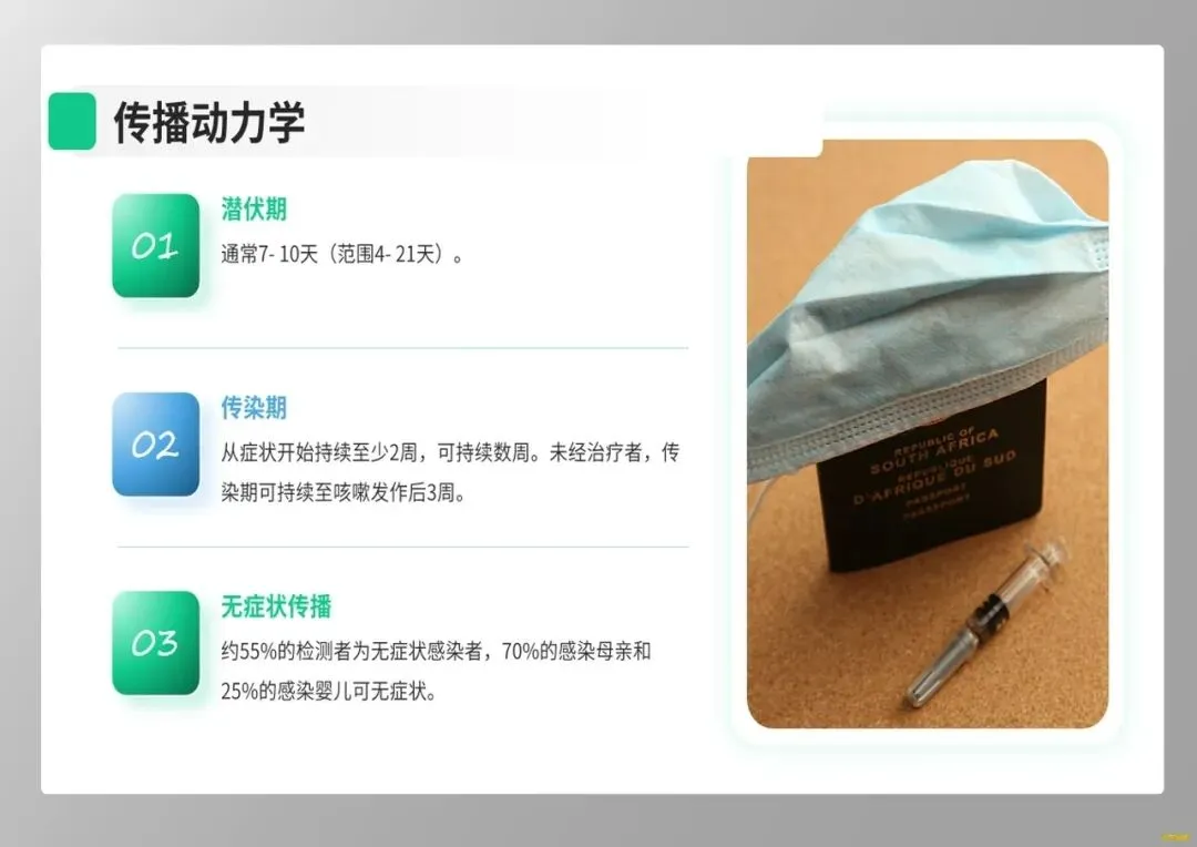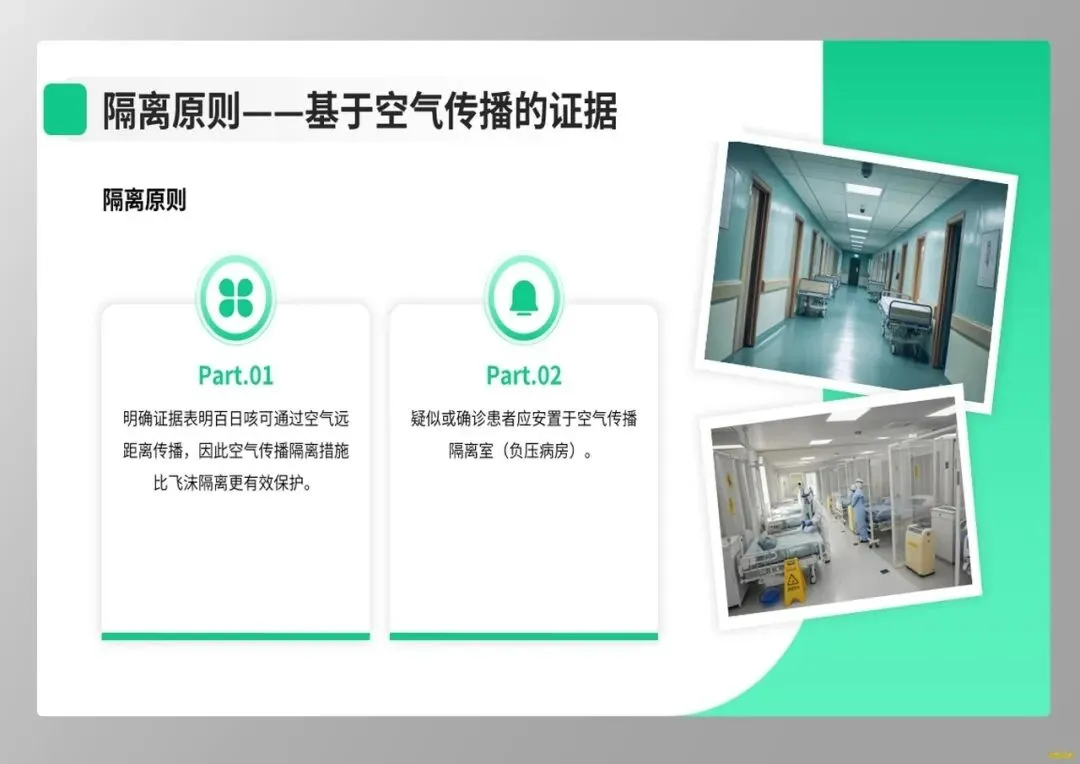 首先,我们需要更新对疾病传播与防护的认知。最新证据表明,百日咳可通过气溶胶进行空气传播,传播距离远超既往认知。因此,临床防护必须升级,接触疑似或确诊患者时,应严格执行空气隔离措施,佩戴N95及以上级别的呼吸器。