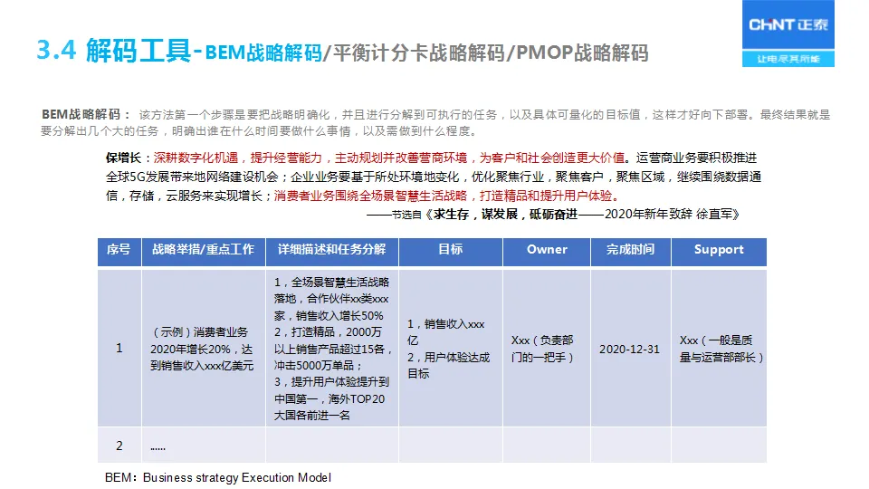 BEM(Business Strategy Execution Model) 是华为将战略转化为行动的关键工具。