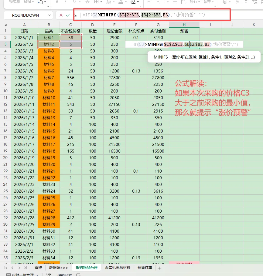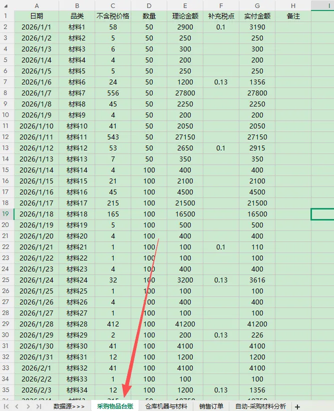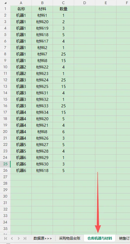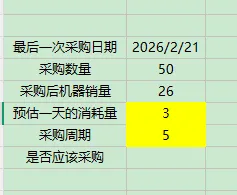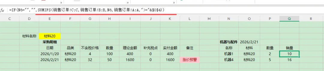 excel案例——小公司仓库采购与机器制作数量双监控