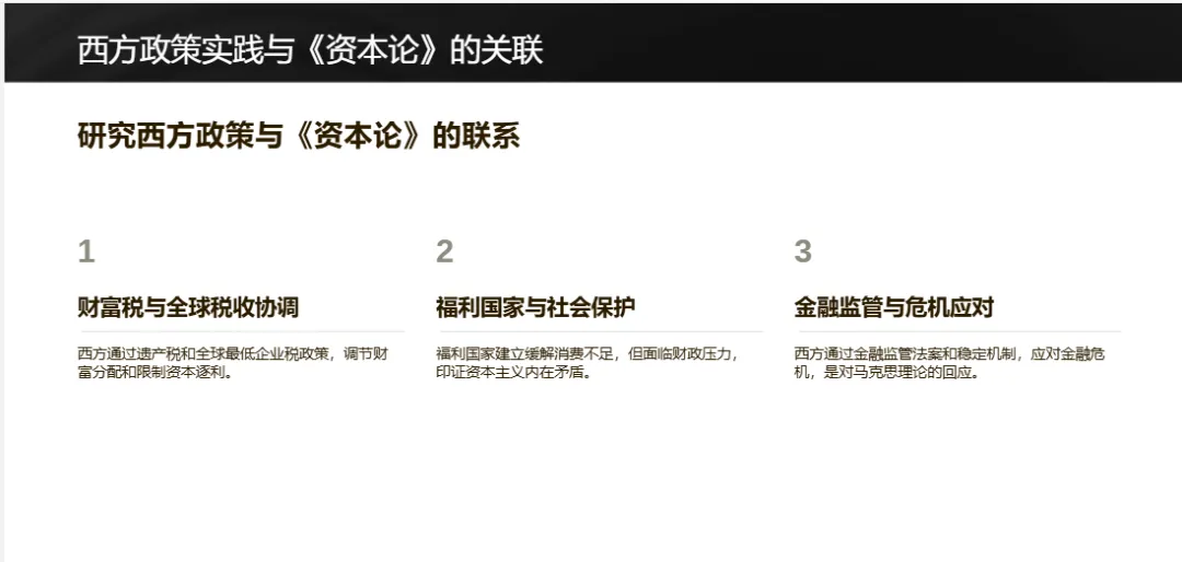 中国政策实践中,共同富裕政策、2025年两会资本市场改革、新质生产力发展战略,均隐性契合《资本论》理论逻辑,通过国家引导缓解资本积累矛盾。西方则通过财富税、福利国家建设、金融监管,回应《资本论》对资本主义矛盾的批判,但仍未解决根本问题。
