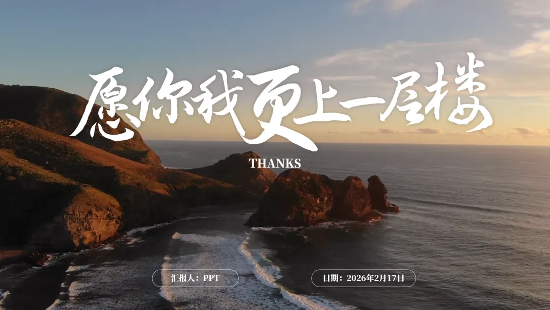 今天再次分享一个有创意的动态PPT结尾页面,像电影片尾一样,用金句结尾,高级大气,视频背景,美丽的海岸,希望对大家有所帮助。