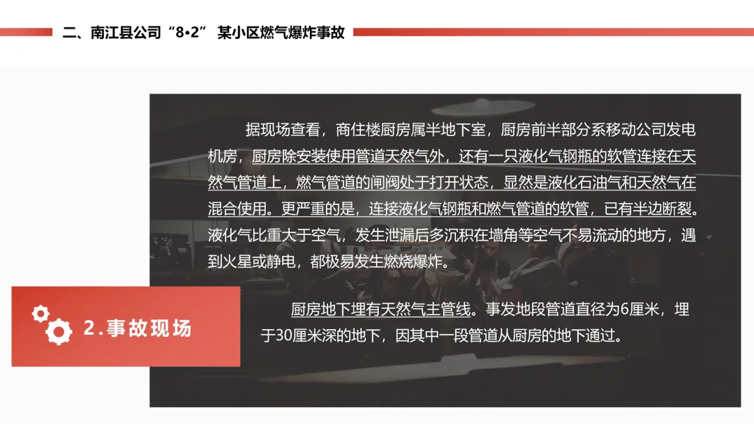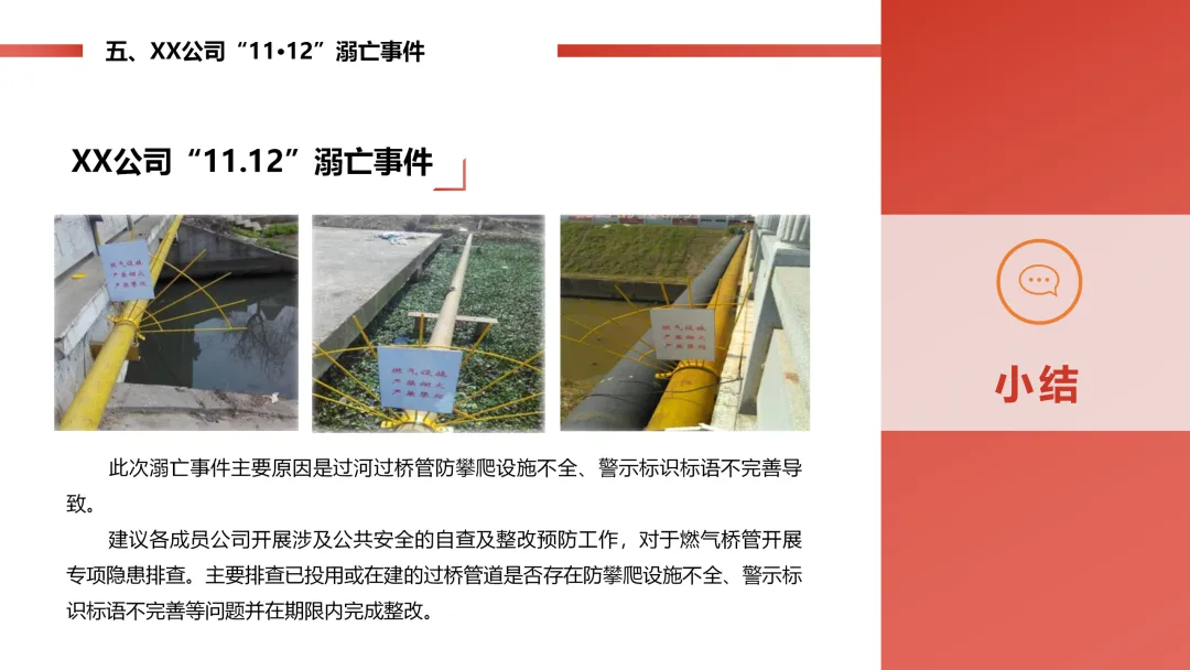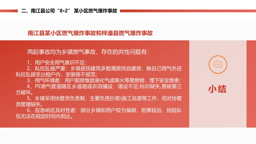 这份PPT主要梳理了5 起不同类型的燃气相关典型事故 / 事件,用真实案例讲清了事故发生的经过、原因、后果,还总结了问题和整改防范的办法,核心就是通过这些案例给燃气行业提个醒,避免再出类似问题,内容通俗来讲就是: