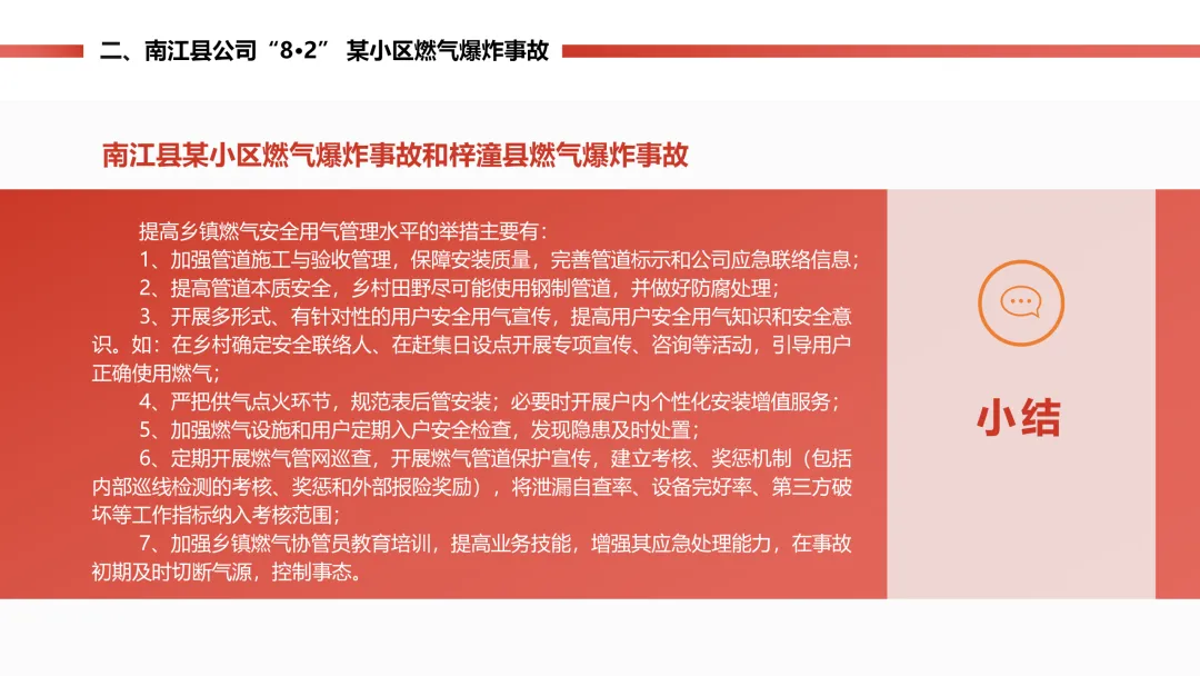 这些案例里,有的是燃气公司操作、巡检、处置不当,有的是用户违规用气、安全意识差,还有的是设施本身质量 / 防护有问题;文档针对这些问题,也给了具体的整改办法,比如加强管道验收、定期入户检查、做好设施防护、开展安全宣传、完善应急预案和演练等,本质就是让燃气行业从这些案例里吸取教训,把安全做到位。