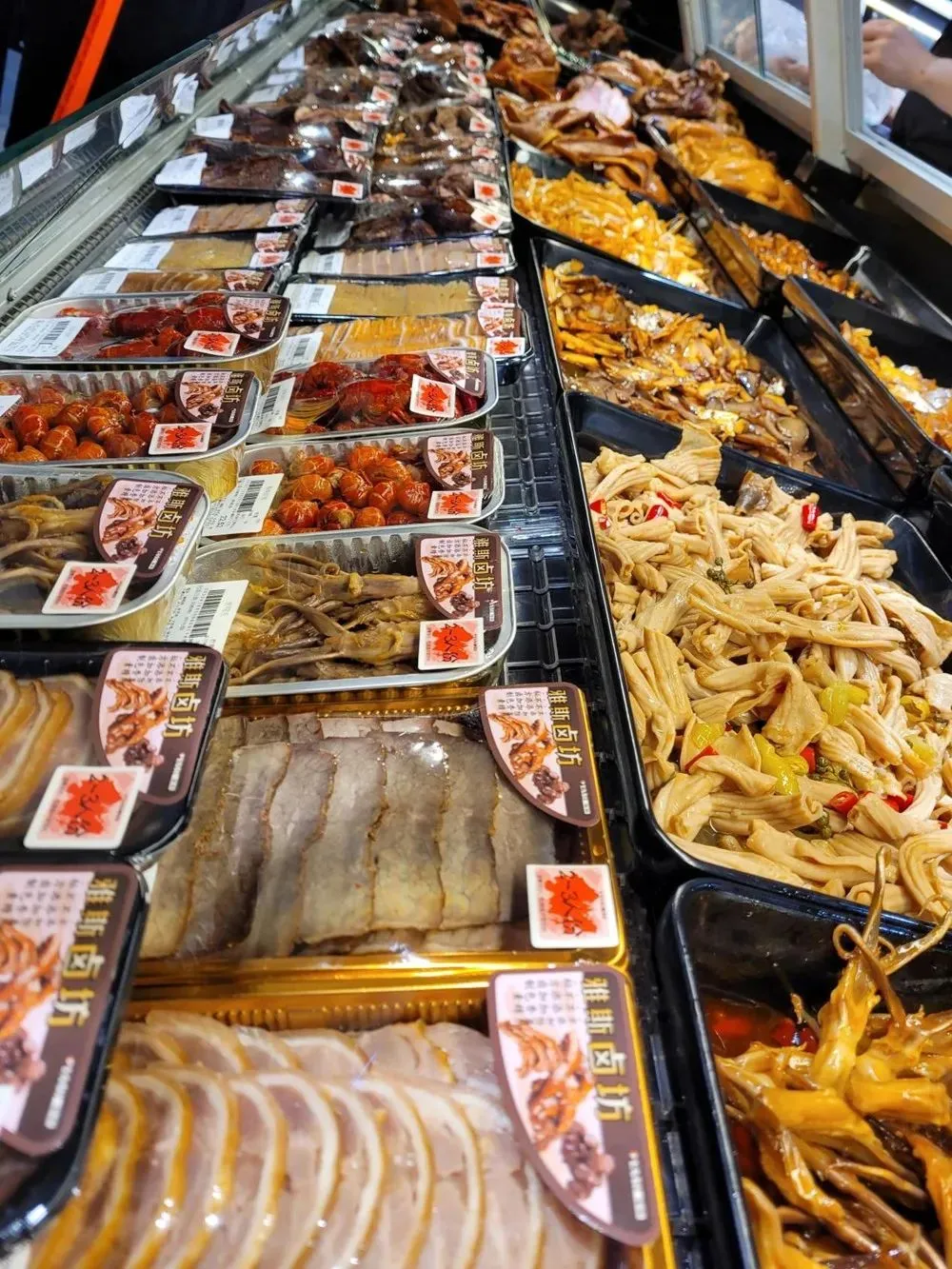 胖东来熟食区会根据季节推出当季特色,例如春天的野菜、夏季的凉拌系列、秋季的大闸蟹和冬季的热锅等,而且,还会不定期的研发新品,在胖东来每位顾客都有他(她)最惦记的食物。