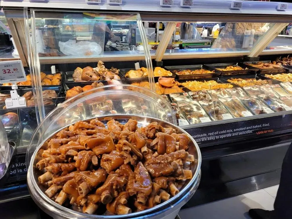 熟食区的商品多、吃法讲究多、设备也多,在这个区域会看到各种提示。