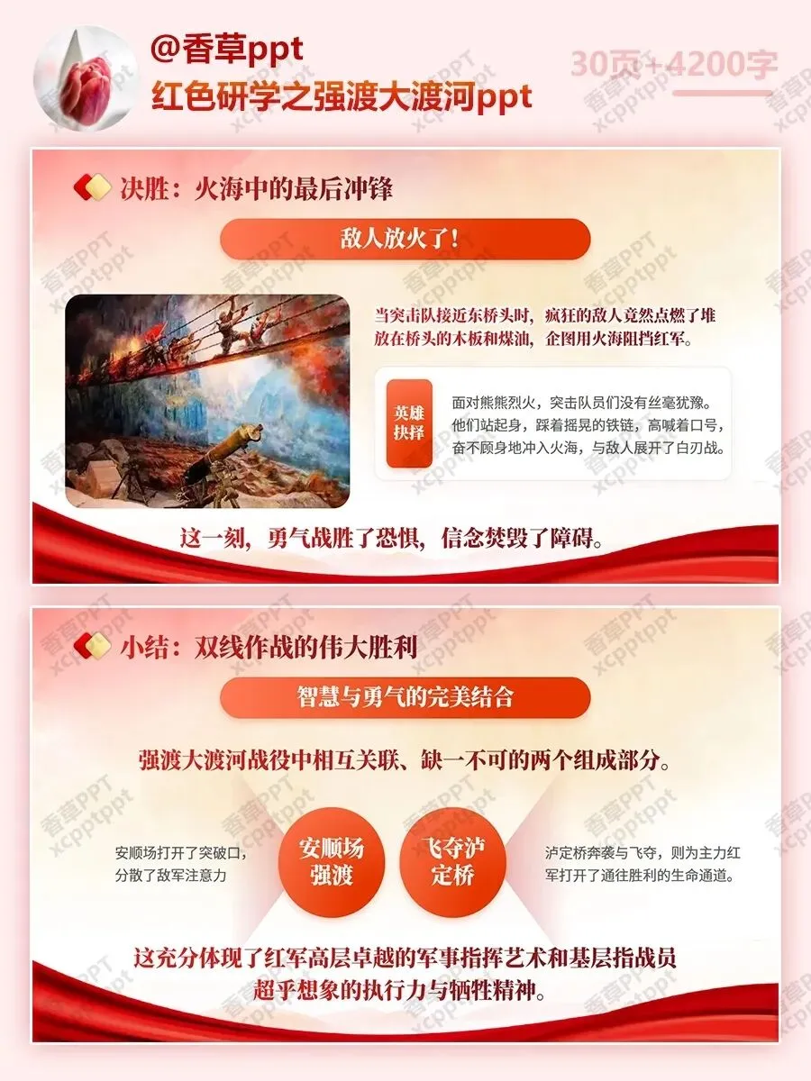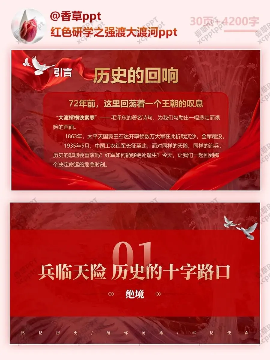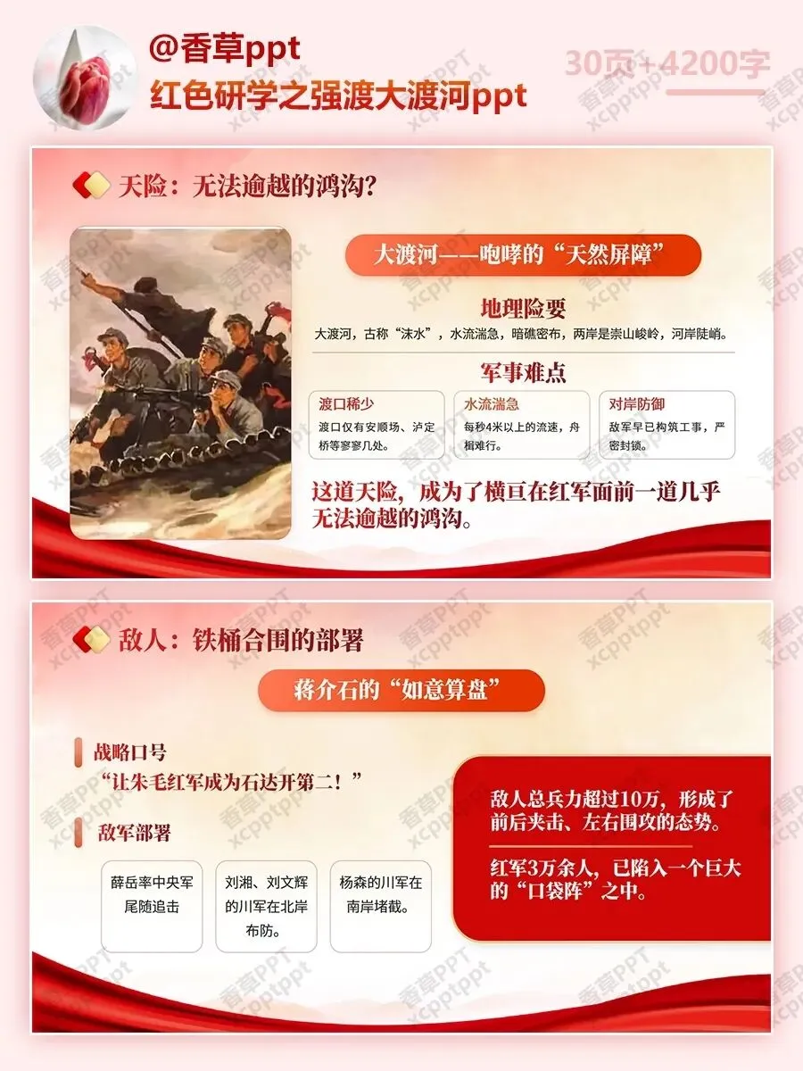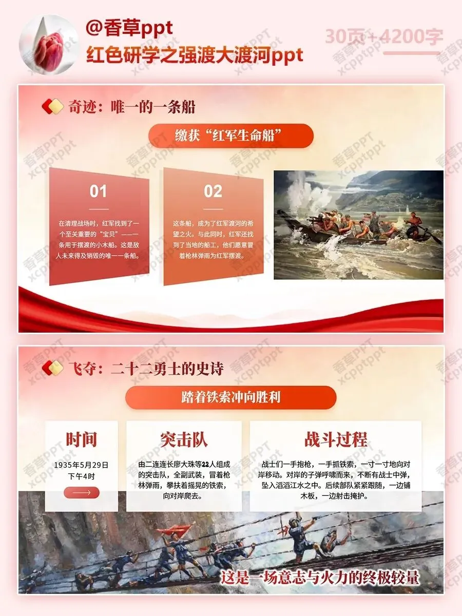 红色研学之强渡大渡河PPT分享,共30页,文字稿4200字,图文均可编辑修改