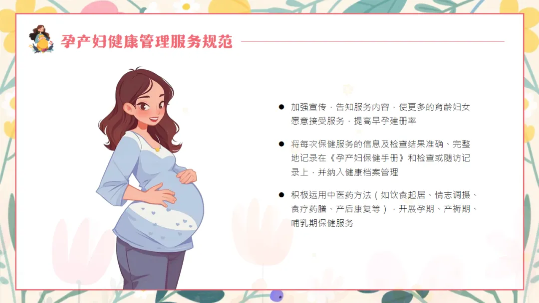 开展与机构职责、功能相适应的妇女保健健康教育、孕产妇中医健康管理和技术服务